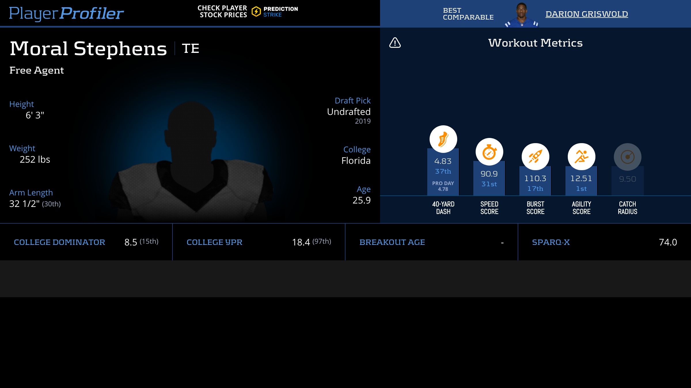 | Year Year | Games Games | Receptions Recs | Receiving Yards Rec Yds | Target Share Tgt Share | Catch Rate Catch Rate | Receiving Touchdowns Rec TDs | Special Teams Yards Special Teams | Age Age | School School |