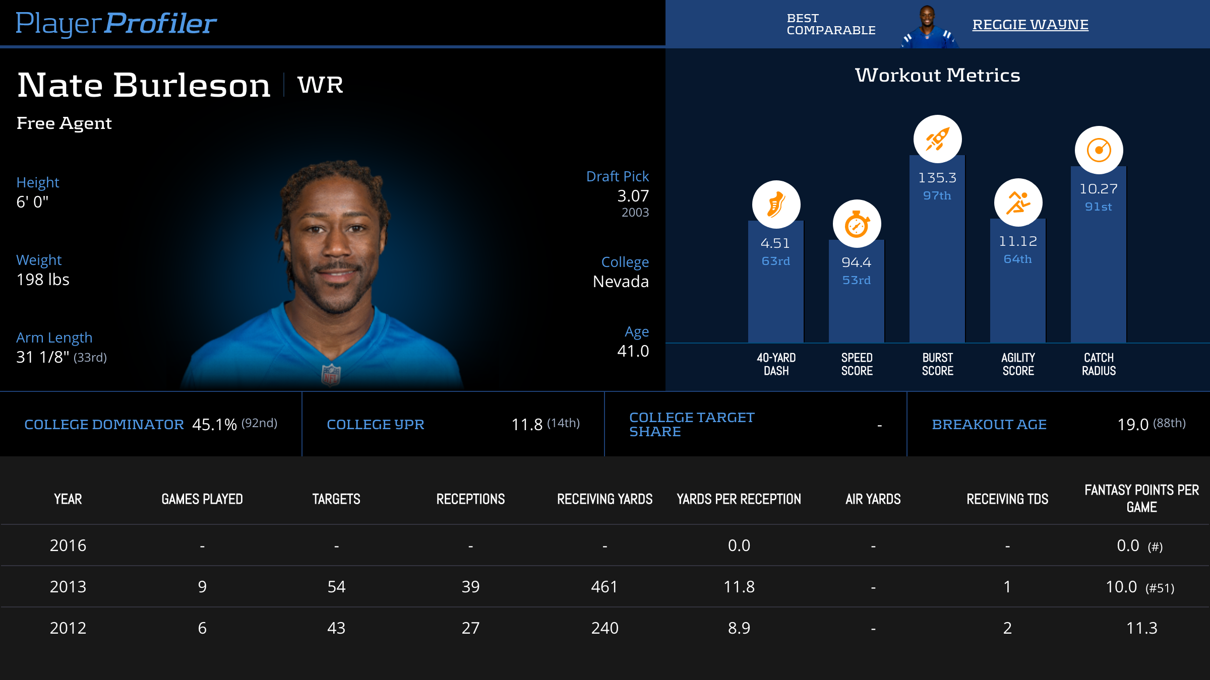 Box score statistics such as targets, yards, touchdowns, and fantasy points per target are updated the next day. Advanced stats and metrics are updated later in the week during the NFL season.