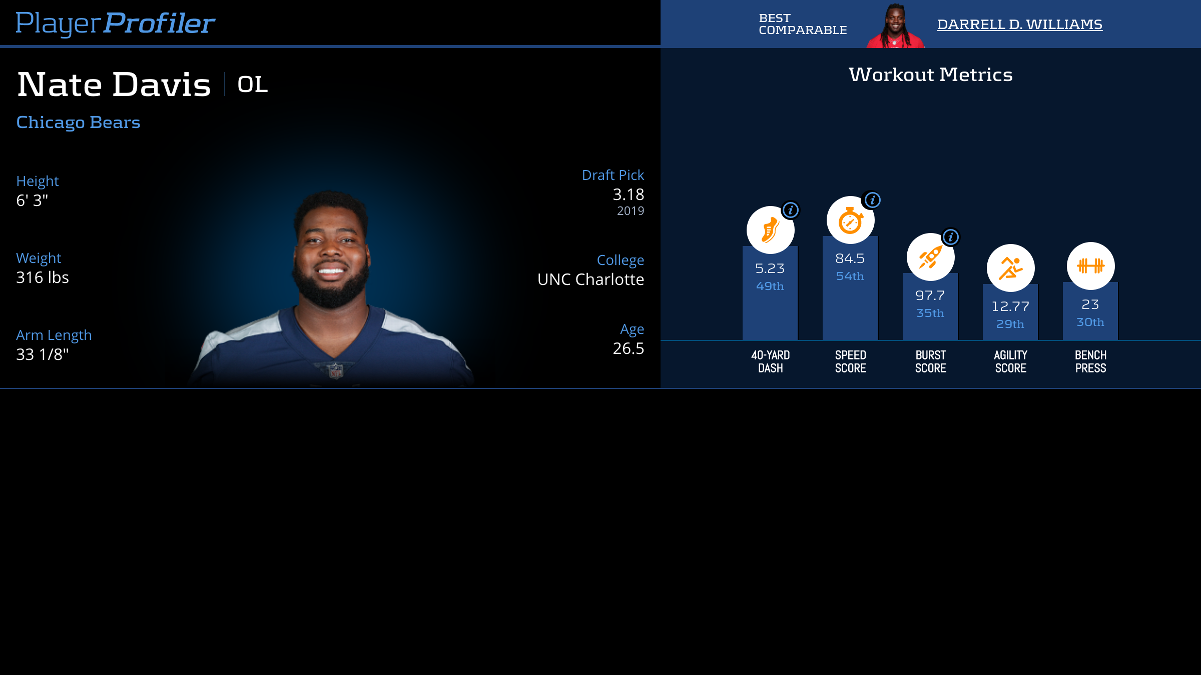 Download all Nate Davis advanced stats and metrics with Data Analysis.