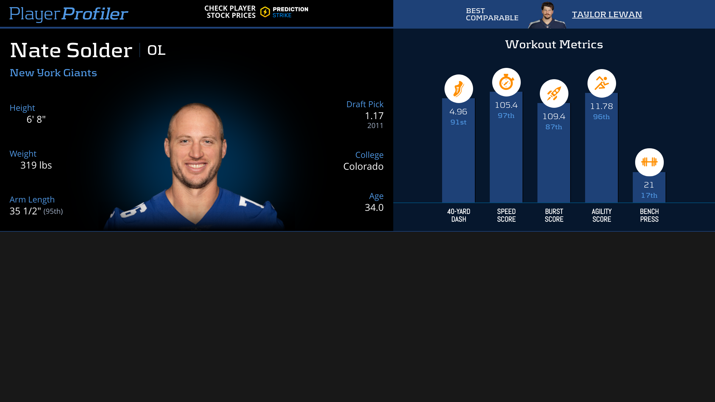 Download all Nate Solder advanced stats and metrics with Data Analysis.