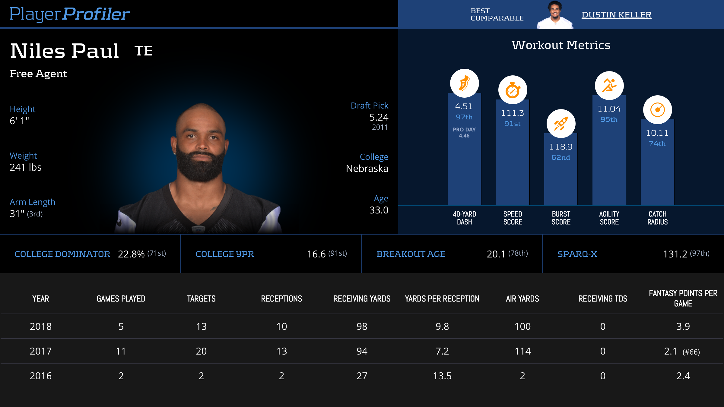 | Year Year | Games Games | Receptions Recs | Receiving Yards Rec Yds | Target Share Tgt Share | Catch Rate Catch Rate | Receiving Touchdowns Rec TDs | Special Teams Yards Special Teams | Age Age | School School |