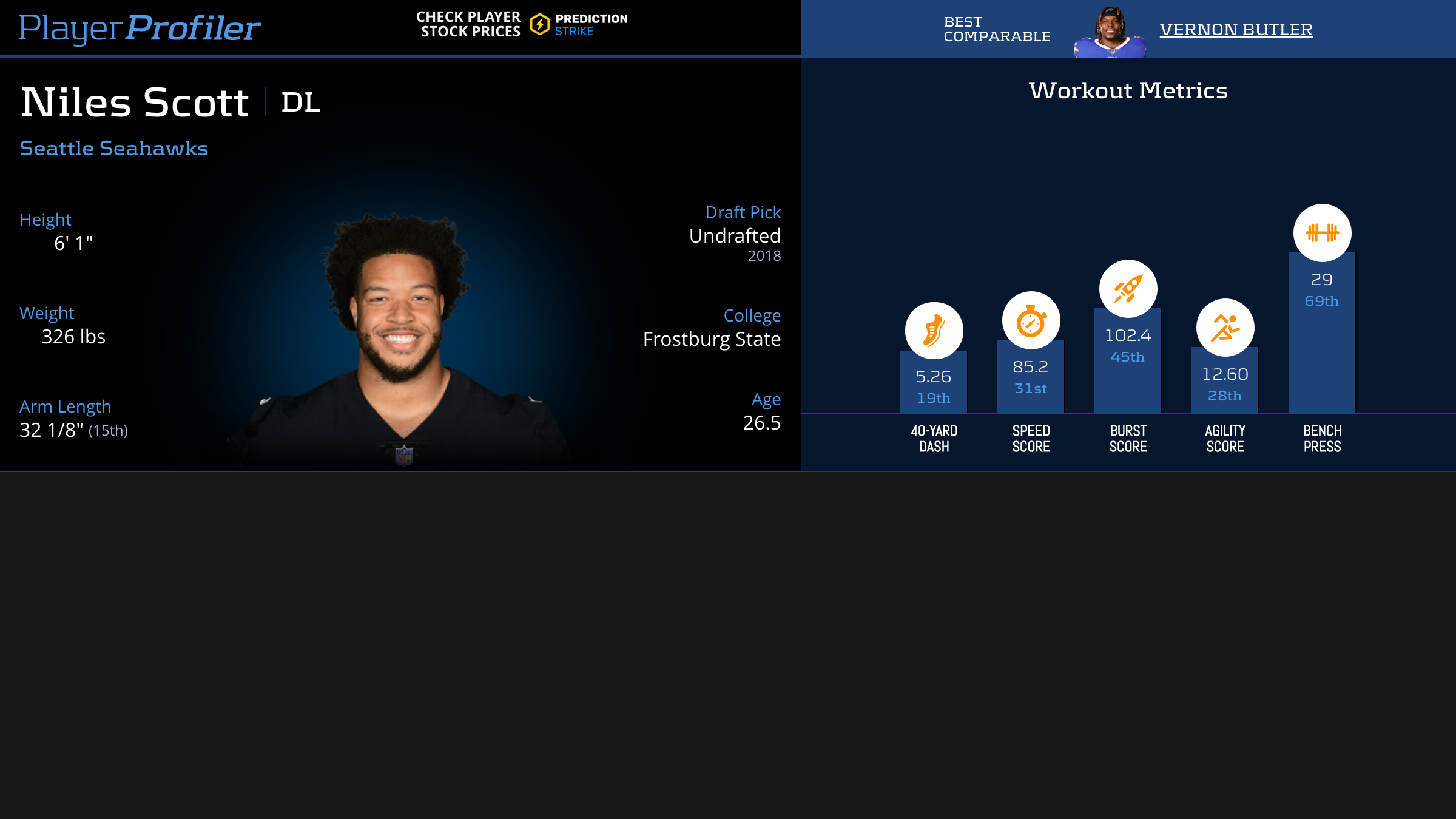 Download all Niles Scott advanced stats and metrics with Data Analysis.