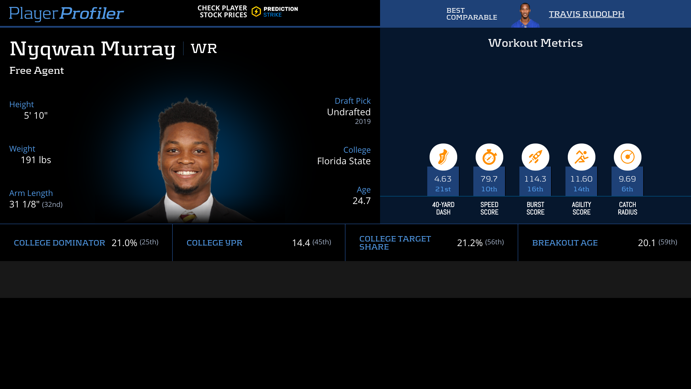 | Year Year | Games Games | Receptions Recs | Receiving Yards Rec Yds | Target Share Tgt Share | Catch Rate Catch Rate | Receiving Touchdowns Rec TDs | Special Teams Yards Special Teams | Age Age | School School |