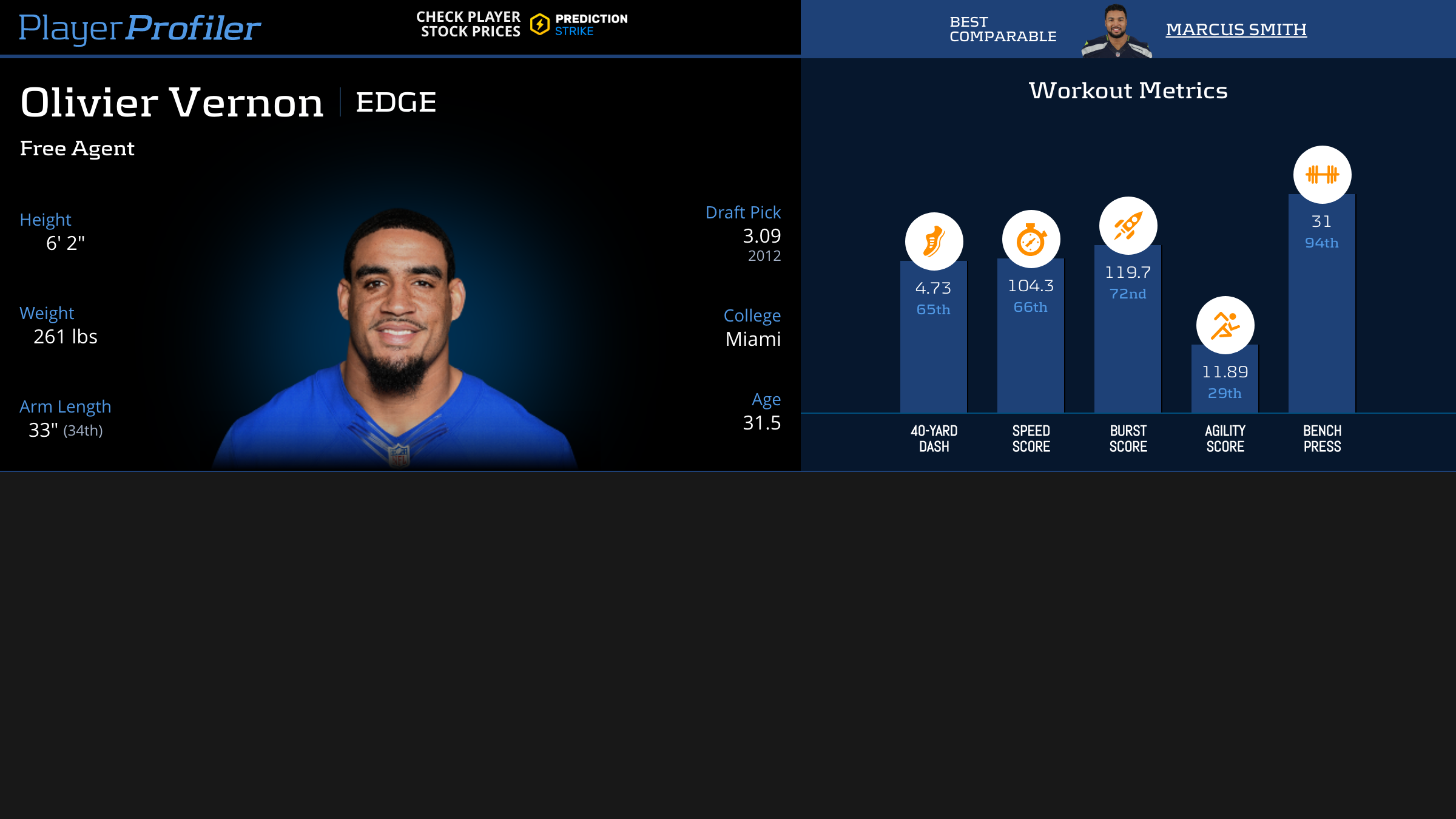 Value Over Stream: Valuation scheme calculates a player's fantasy pts/game over the average waiver wire replacement in standard fantasy league formats during either the current season (or previous year during the offseason) and adjusts for positional bust rates. VOS rank in parenthesis spans all positions, enabling player comparisons across QB's, RB's, WR's, and TE's.