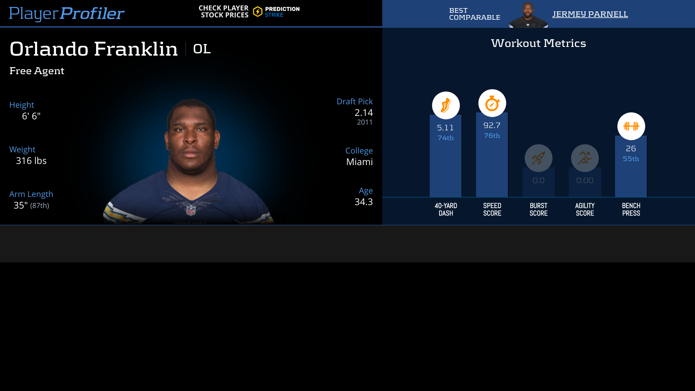 Download all Orlando Franklin advanced stats and metrics with Data Analysis.