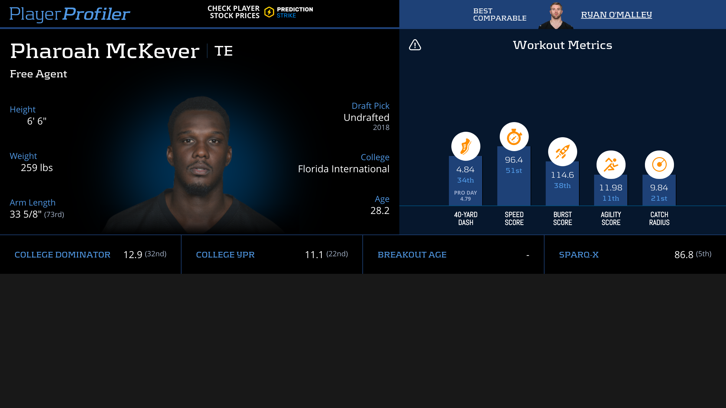 | Year Year | Games Games | Receptions Recs | Receiving Yards Rec Yds | Target Share Tgt Share | Catch Rate Catch Rate | Receiving Touchdowns Rec TDs | Special Teams Yards Special Teams | Age Age | School School |