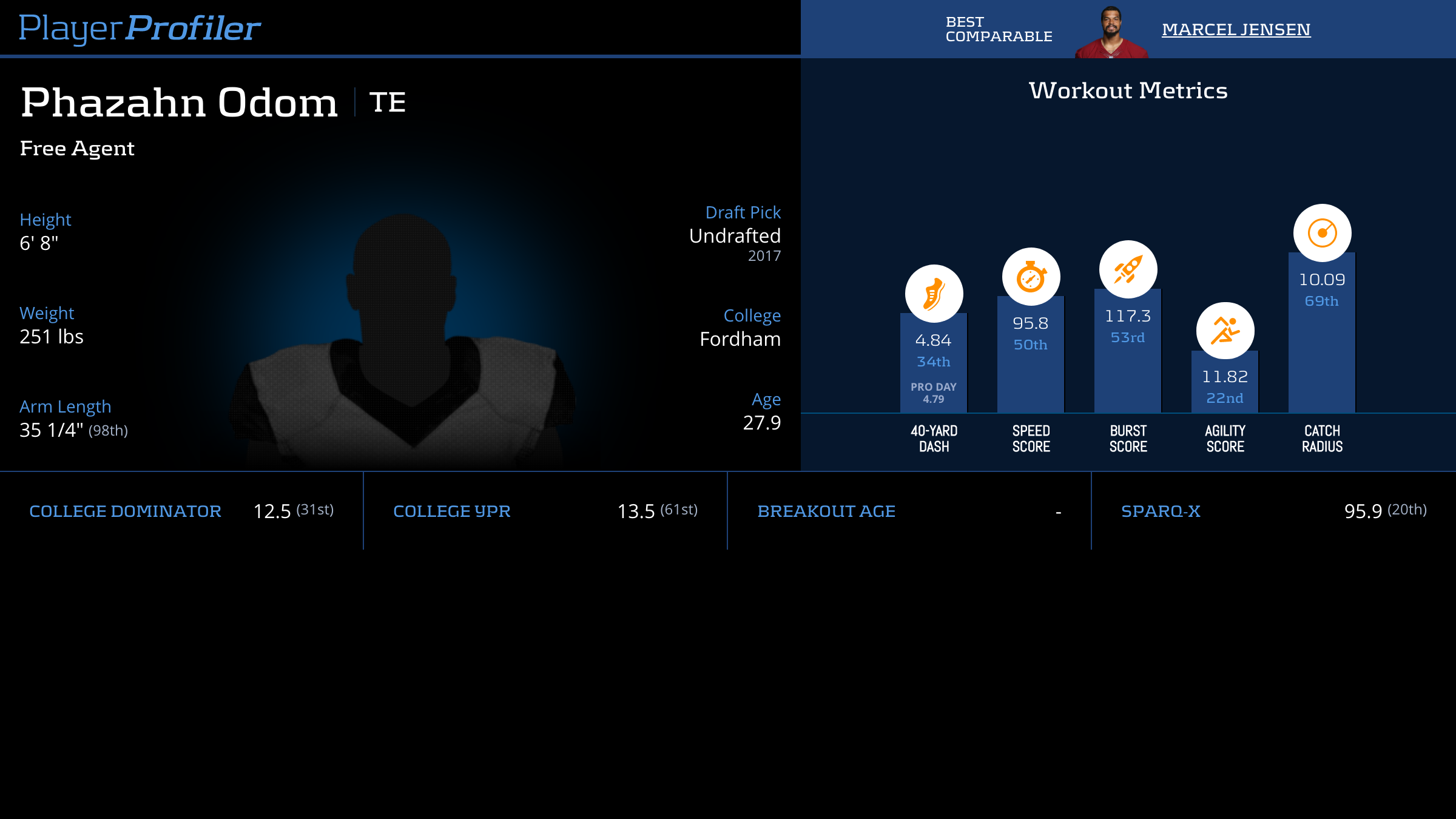 | Year Year | Games Games | Receptions Recs | Receiving Yards Rec Yds | Target Share Tgt Share | Catch Rate Catch Rate | Receiving Touchdowns Rec TDs | Special Teams Yards Special Teams | Age Age | School School |