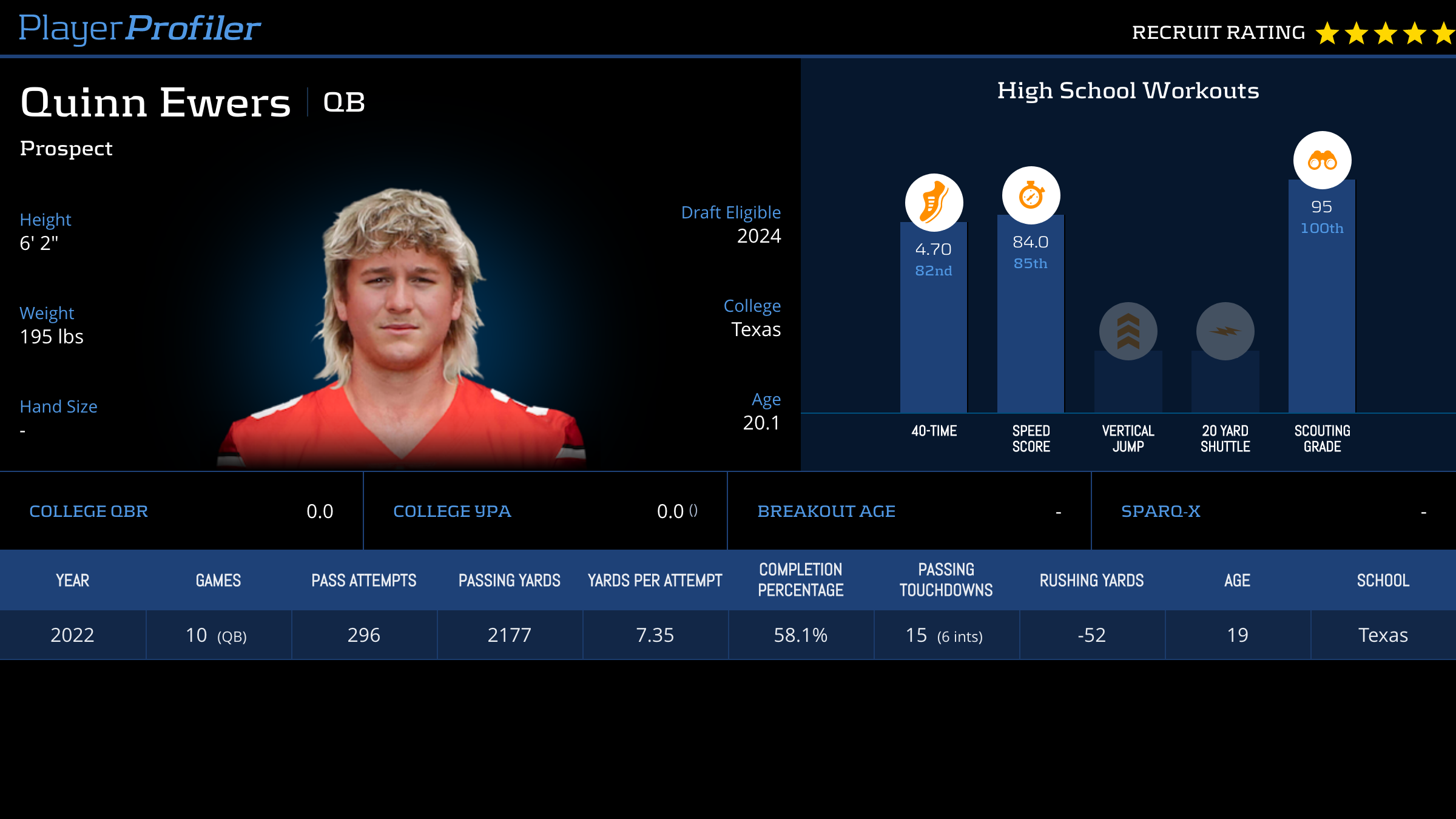 | Year Year | Games Games | Pass Attempts Pass Atts | Passing Yards Pass Yds | Yards Per Attempt YPA | Completion Percentage Comp % | Passing Touchdowns Pass TDs | Rushing Yards Rush Yds | Age Age | School School |