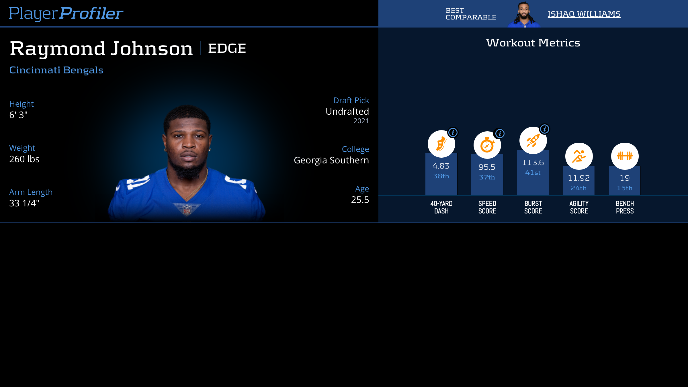 Download all Raymond Johnson advanced stats and metrics with Data Analysis.