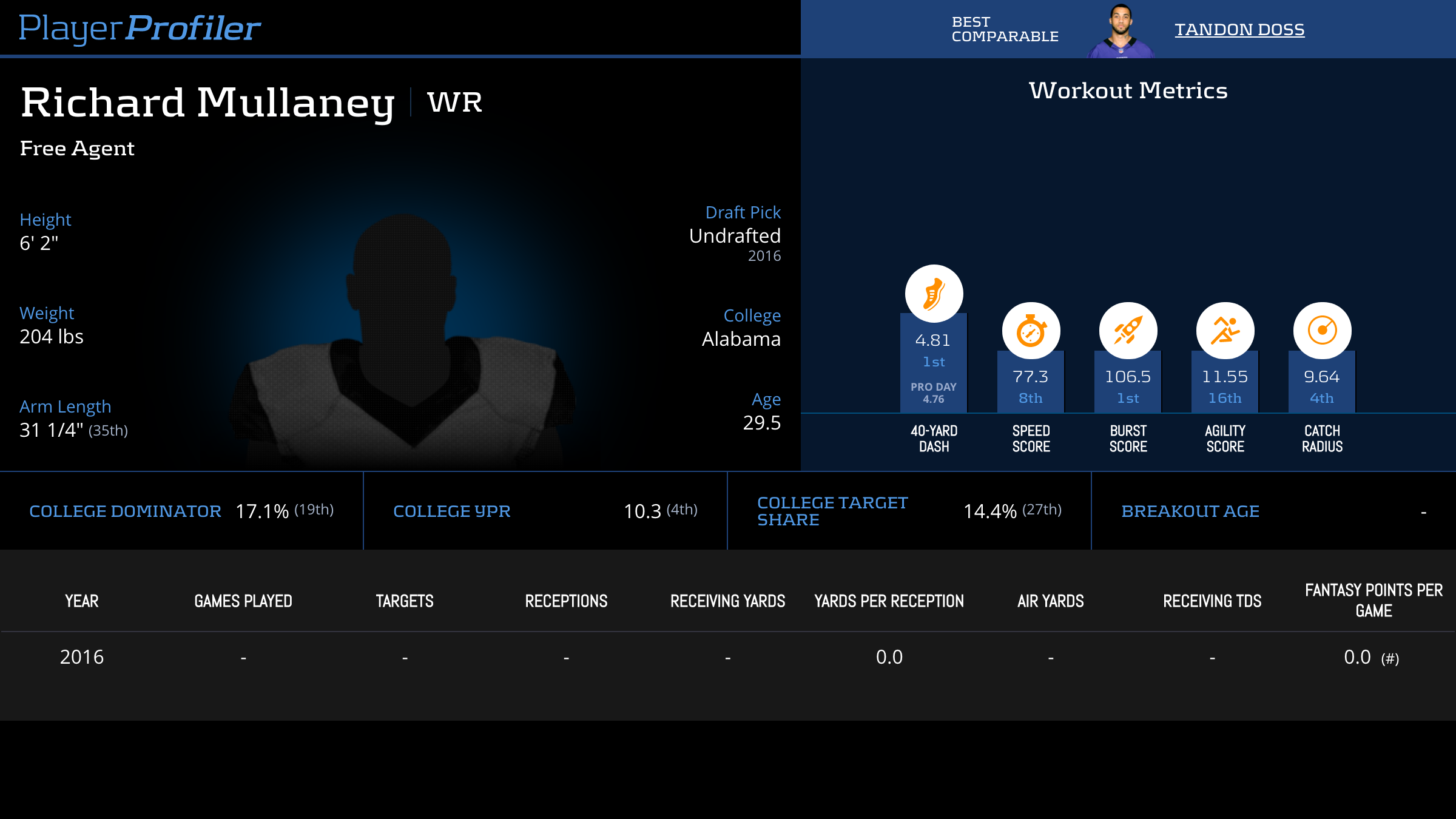 | Year Year | Games Games | Receptions Recs | Receiving Yards Rec Yds | Target Share Tgt Share | Catch Rate Catch Rate | Receiving Touchdowns Rec TDs | Special Teams Yards Special Teams | Age Age | School School |
