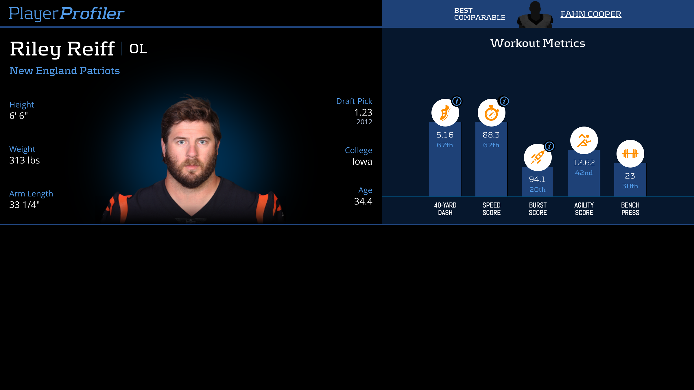 Download all Riley Reiff advanced stats and metrics with Data Analysis.