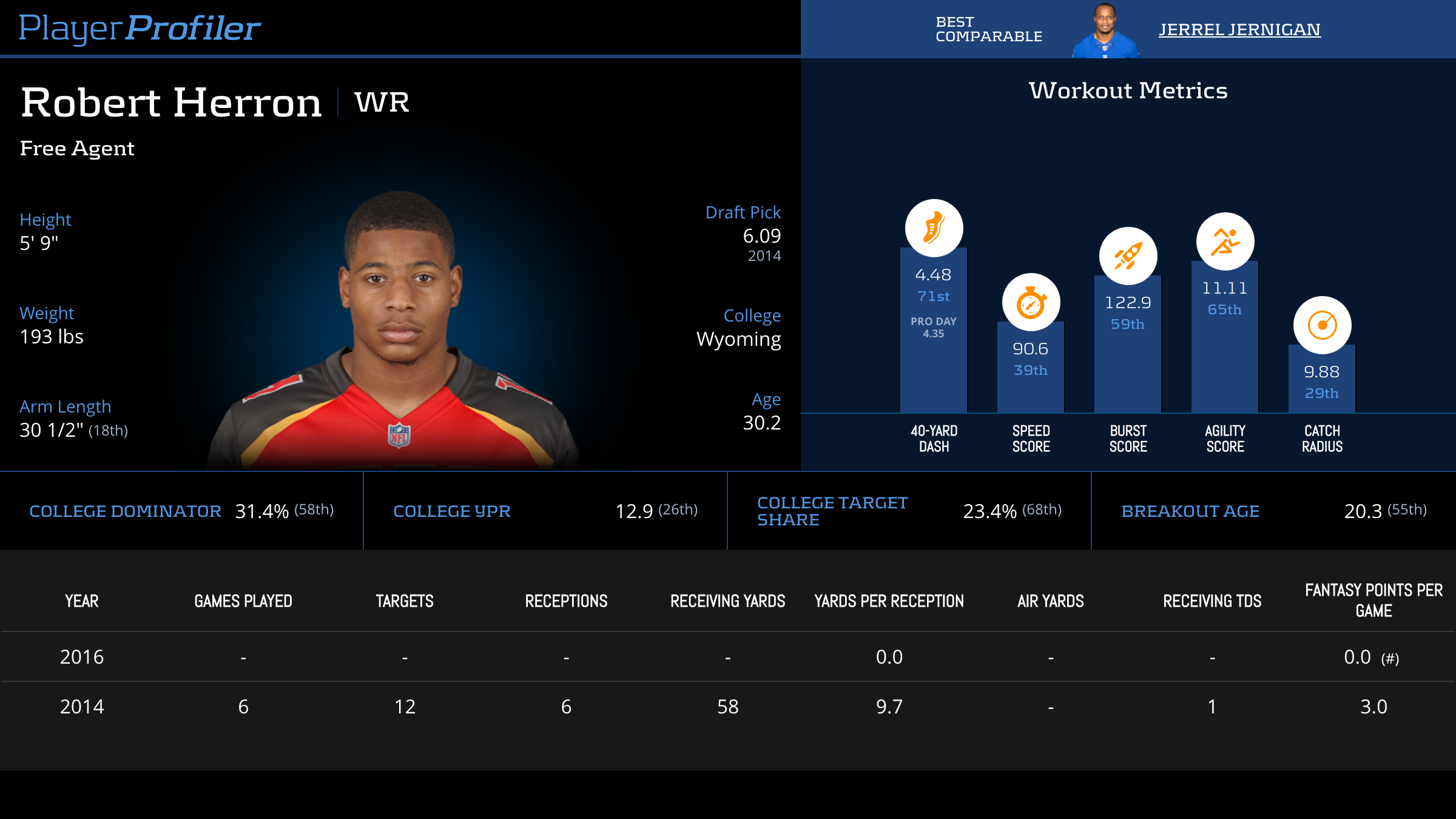 Box score statistics such as targets, yards, touchdowns, and fantasy points per target are updated the next day. Advanced stats and metrics are updated later in the week during the NFL season.