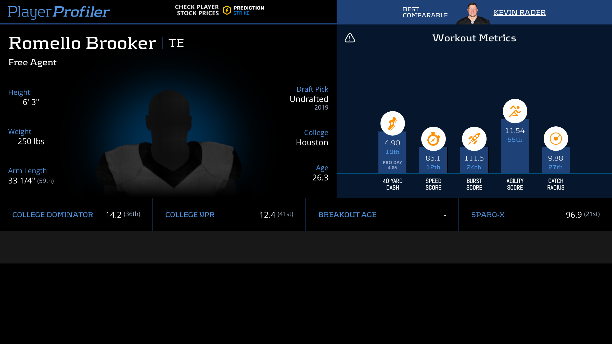| Year Year | Games Games | Receptions Recs | Receiving Yards Rec Yds | Target Share Tgt Share | Catch Rate Catch Rate | Receiving Touchdowns Rec TDs | Special Teams Yards Special Teams | Age Age | School School |