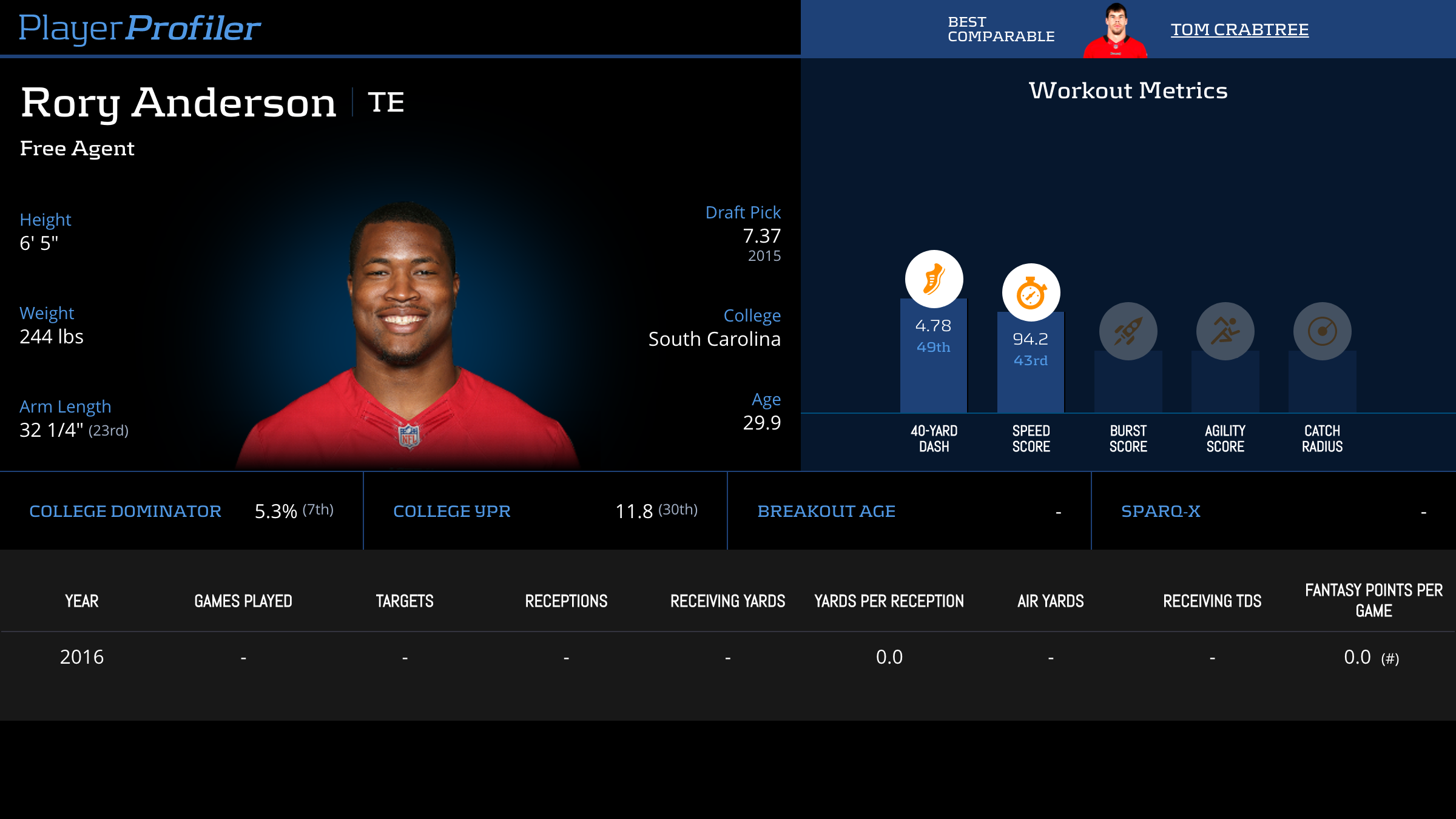 | Year Year | Games Games | Receptions Recs | Receiving Yards Rec Yds | Target Share Tgt Share | Catch Rate Catch Rate | Receiving Touchdowns Rec TDs | Special Teams Yards Special Teams | Age Age | School School |