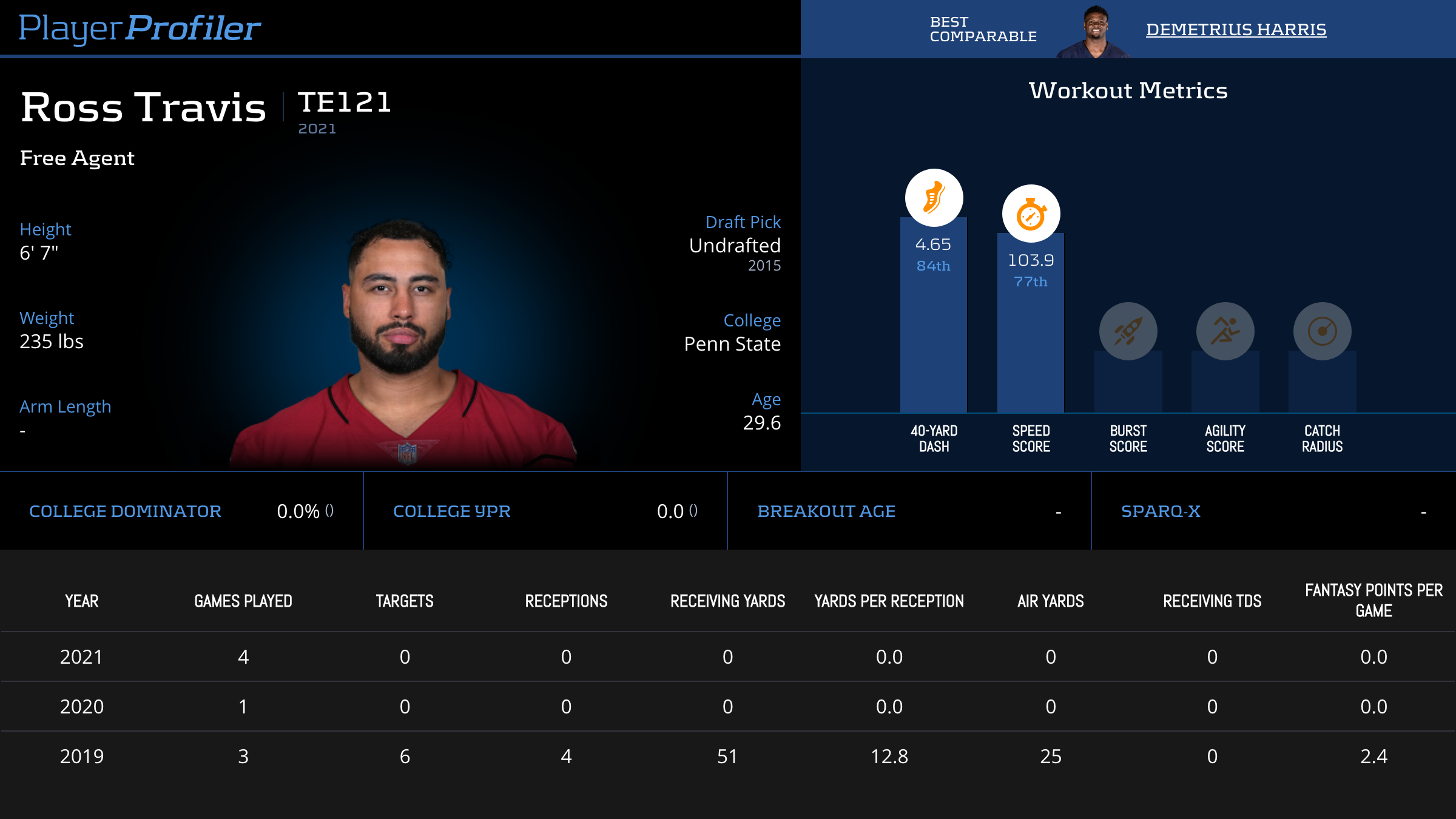 | 5 | SF | 13.3% | 2 | -- | -- | -- | 0.0 (#62) |