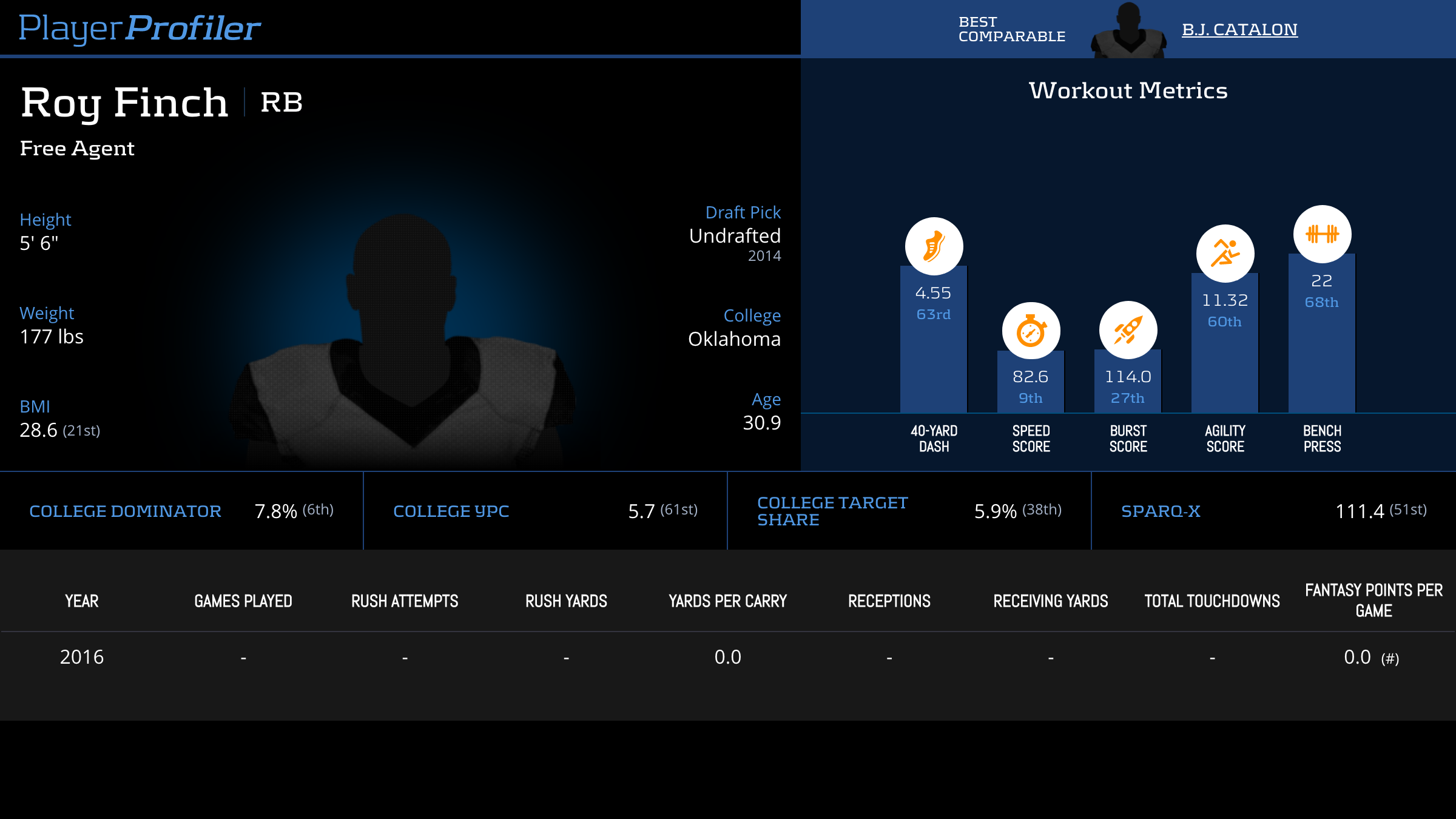 | Year Year | Games Games | Rush Attempts Rush Atts | Rushing Yards Rush Yrds | Total Touchdowns TDs | Receptions Rec | Receiving Yards Rec Yrds | Target Share Tgt Share | Age Age | School School |
