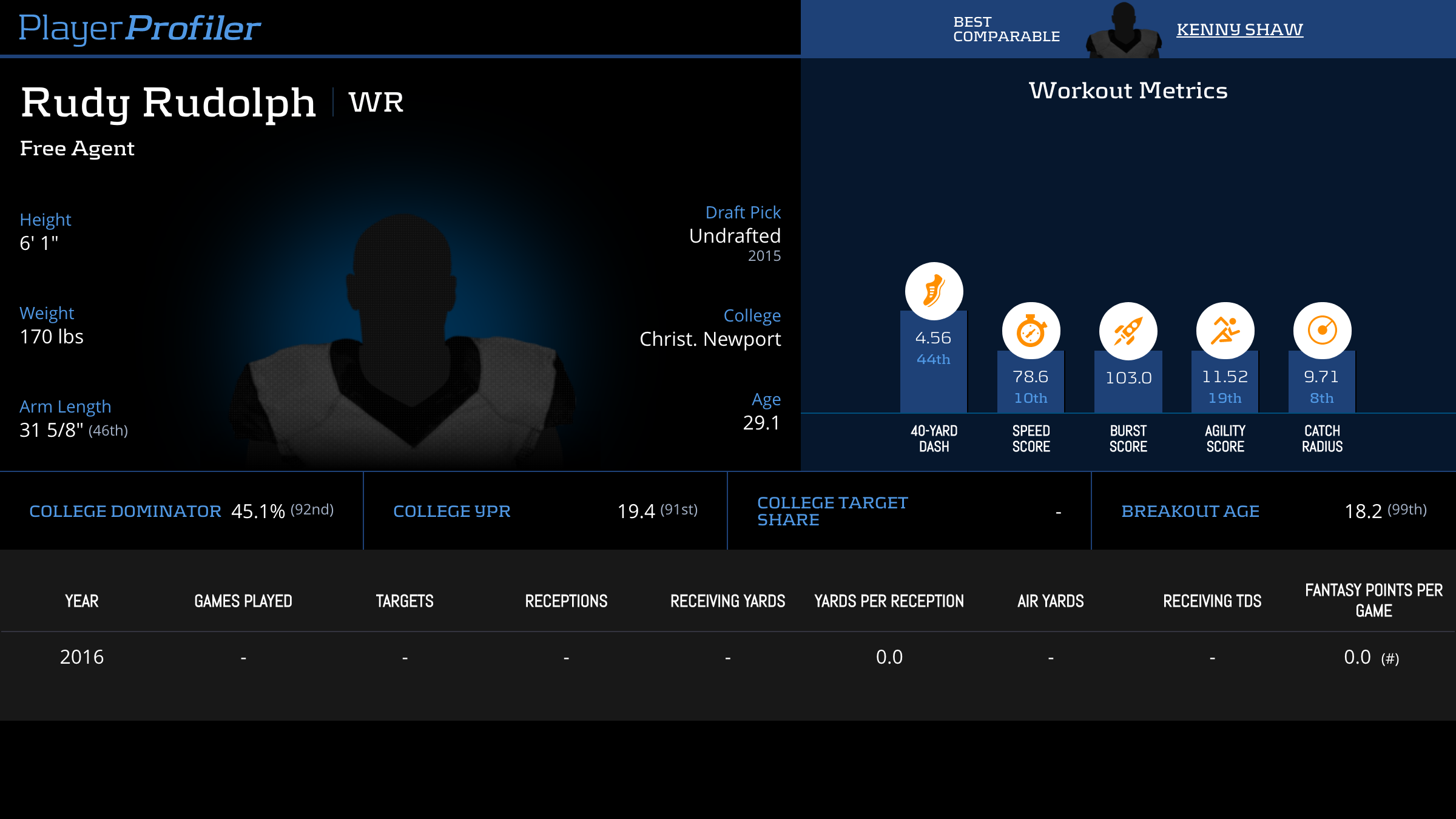 Year Games Tgts Rec Rec Yds YPR Air Yds Rec TD Fantasy Pts/Game