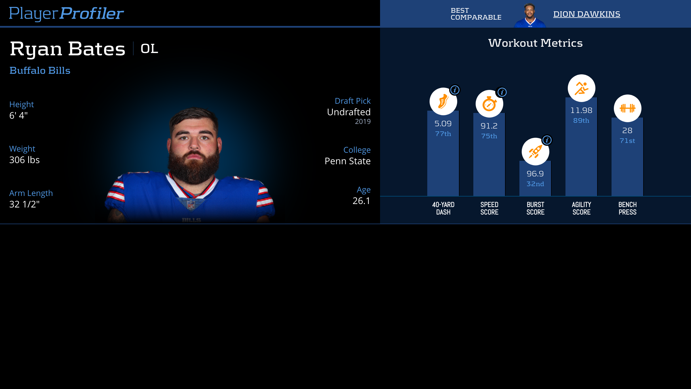 Download all Ryan Bates advanced stats and metrics with Data Analysis.