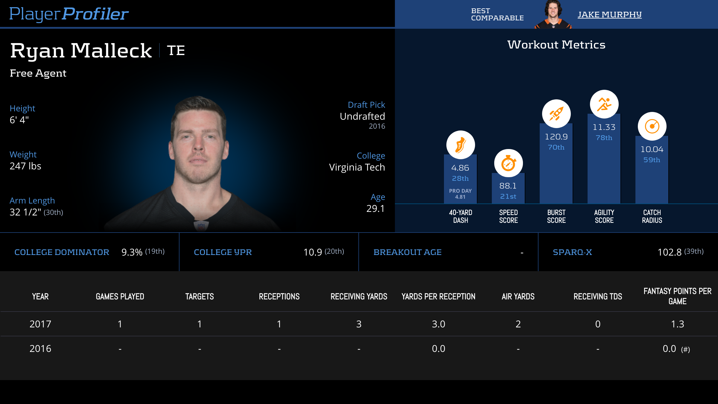 | Year Year | Games Games | Receptions Recs | Receiving Yards Rec Yds | Target Share Tgt Share | Catch Rate Catch Rate | Receiving Touchdowns Rec TDs | Special Teams Yards Special Teams | Age Age | School School |