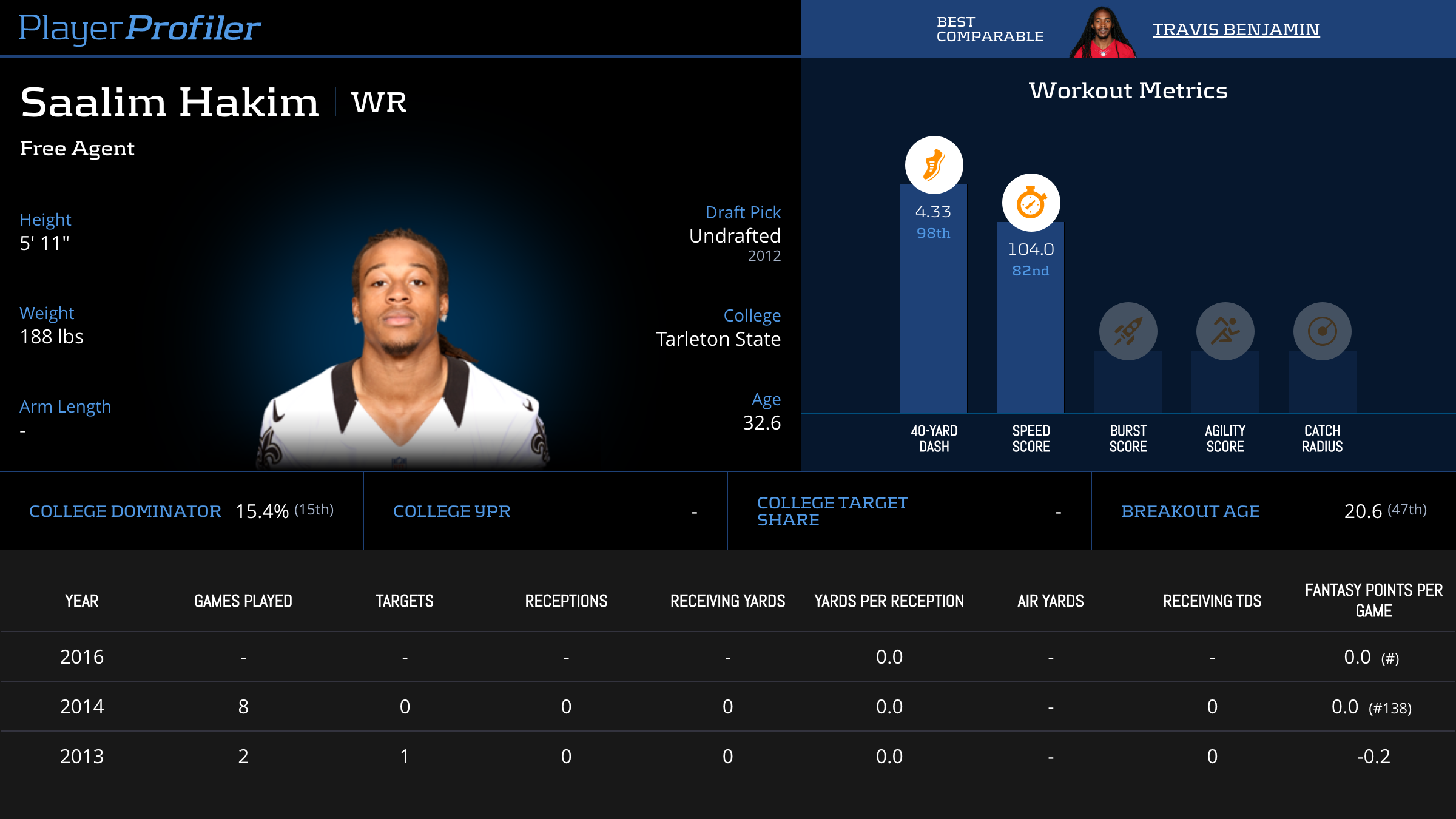 Year Games Tgts Rec Rec Yds YPR Air Yds Rec TD Fantasy Pts/Game