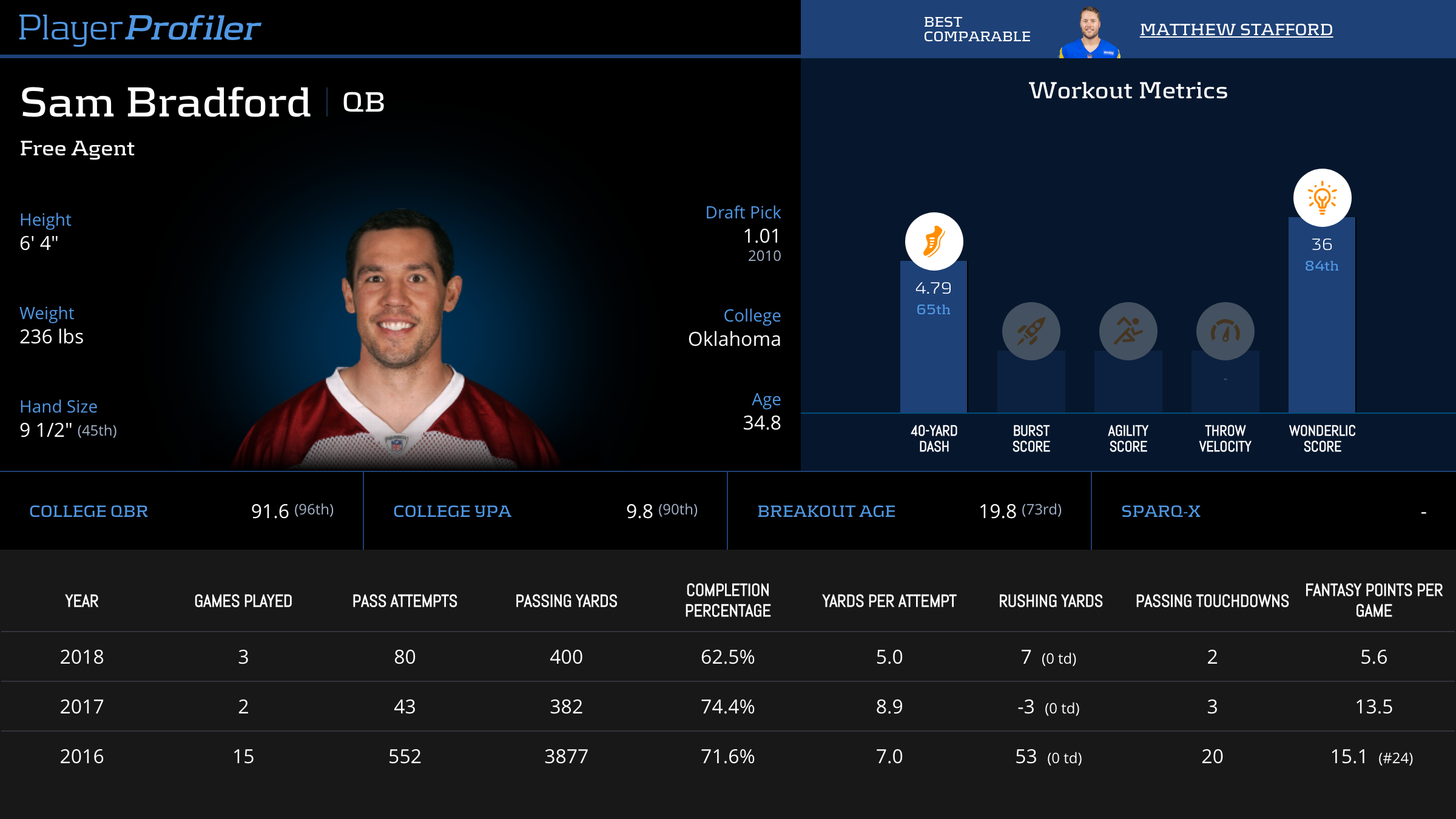 | Year Year | Games Games | Pass Attempts Pass Atts | Passing Yards Pass Yds | Yards Per Attempt YPA | Completion Percentage Comp % | Passing Touchdowns Pass TDs | Rushing Yards Rush Yds | Age Age | School School |