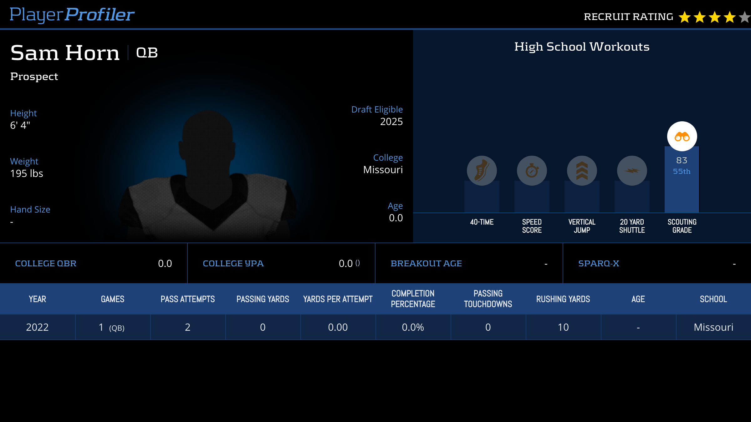 | Year Year | Games Games | Pass Attempts Pass Atts | Passing Yards Pass Yds | Yards Per Attempt YPA | Completion Percentage Comp % | Passing Touchdowns Pass TDs | Rushing Yards Rush Yds | Age Age | School School |