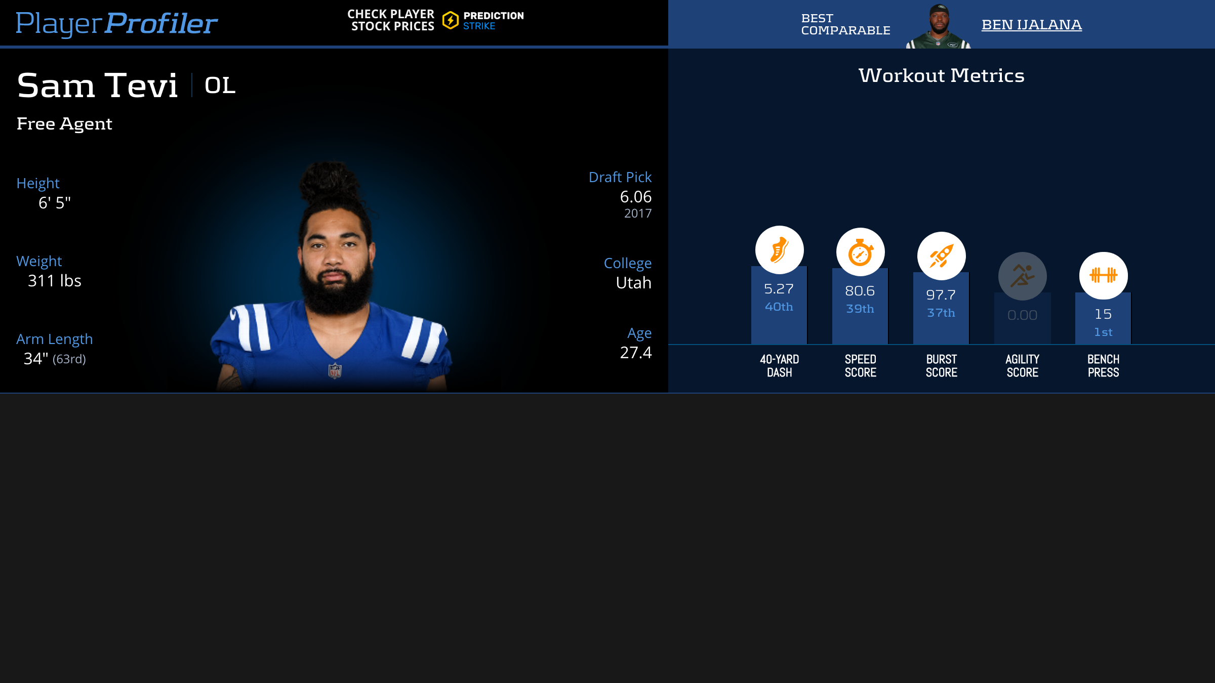 Download all Sam Tevi advanced stats and metrics with Data Analysis.