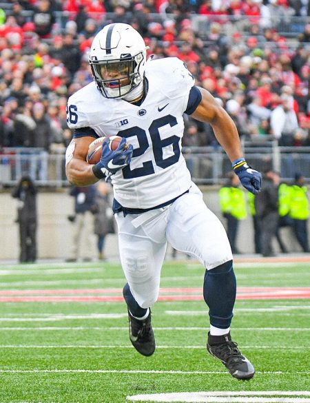Saquon Barkley is a running back for the New York Giants. He was one of the best running backs in the Big Ten during his tenure at Penn State (2015-2017). The Bronx native accrued 5,557 yards from scrimmage in college, as well placing fourth in Heisman Trophy voting and third in Maxwell Award voting. He was a 2017 consensus All-American and the winner of the Paul Hornung Award, and was also named Big Ten Offensive Player of the Year in each of his final two seasons with the Nittany Lions.