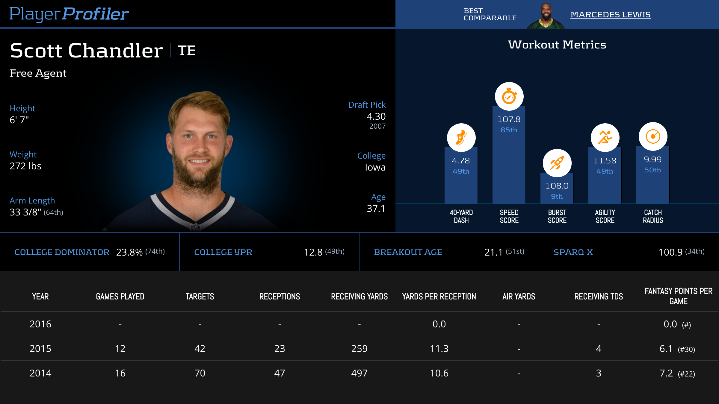 | Year Year | Games Games | Receptions Recs | Receiving Yards Rec Yds | Target Share Tgt Share | Catch Rate Catch Rate | Receiving Touchdowns Rec TDs | Special Teams Yards Special Teams | Age Age | School School |