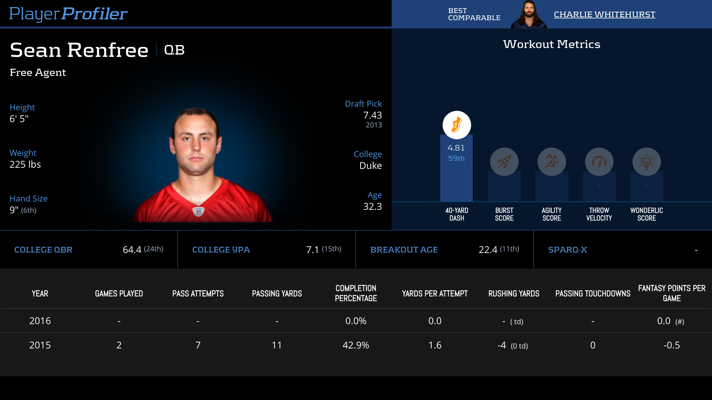 | 14 | CAR | -- | 42.9% | 11 | 1.6 | 0 (1 int) | -- | 0 tds | -0.6 |