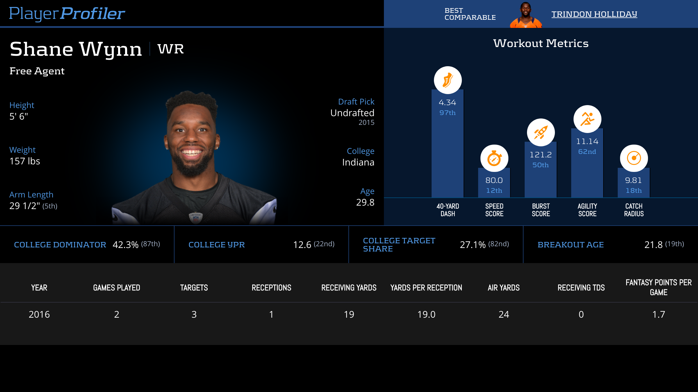 Box score statistics such as targets, yards, touchdowns, and fantasy points per target are updated the next day. Advanced stats and metrics are updated later in the week during the NFL season.