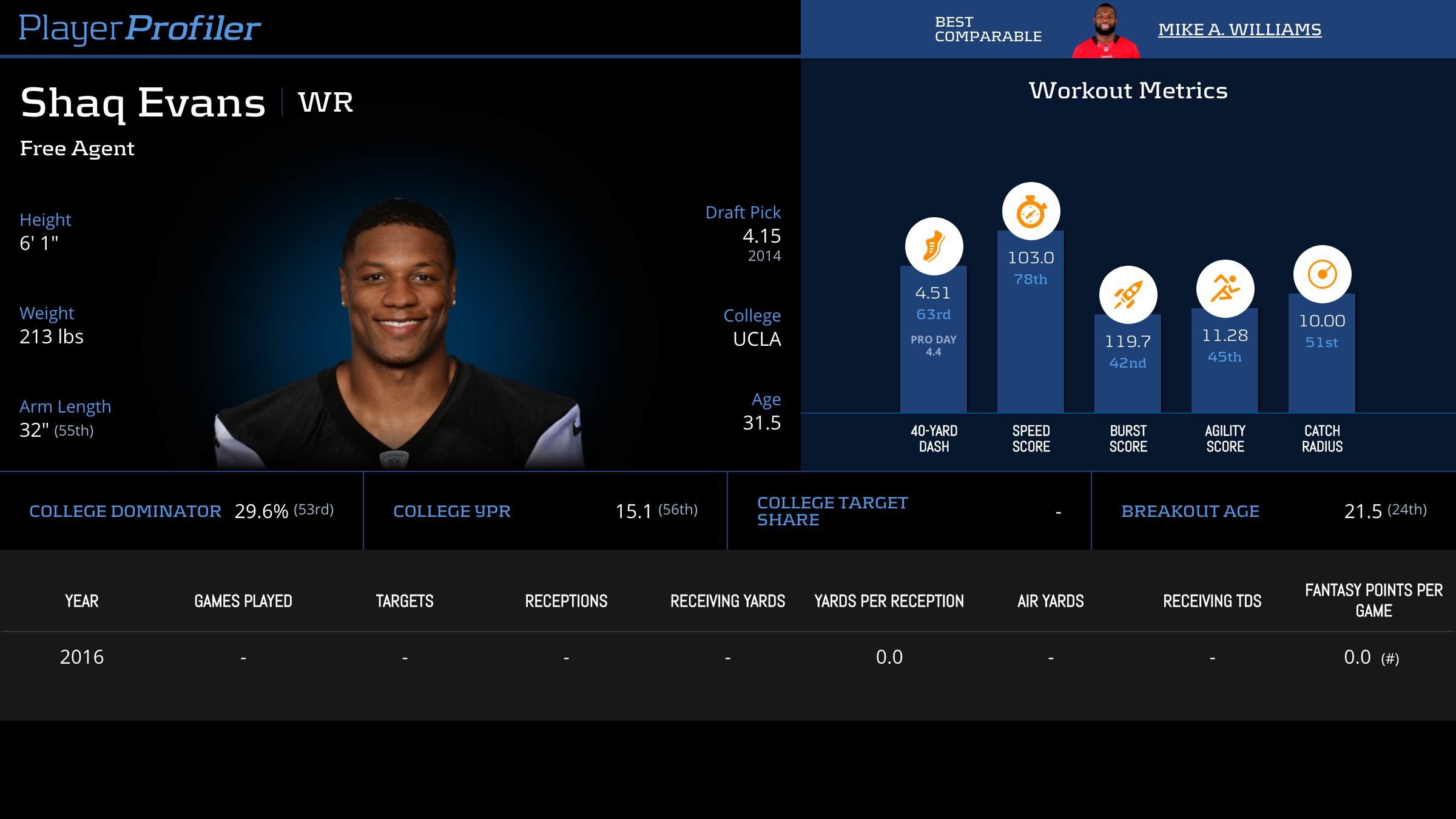 Year Games Tgts Rec Rec Yds YPR Air Yds Rec TD Fantasy Pts/Game