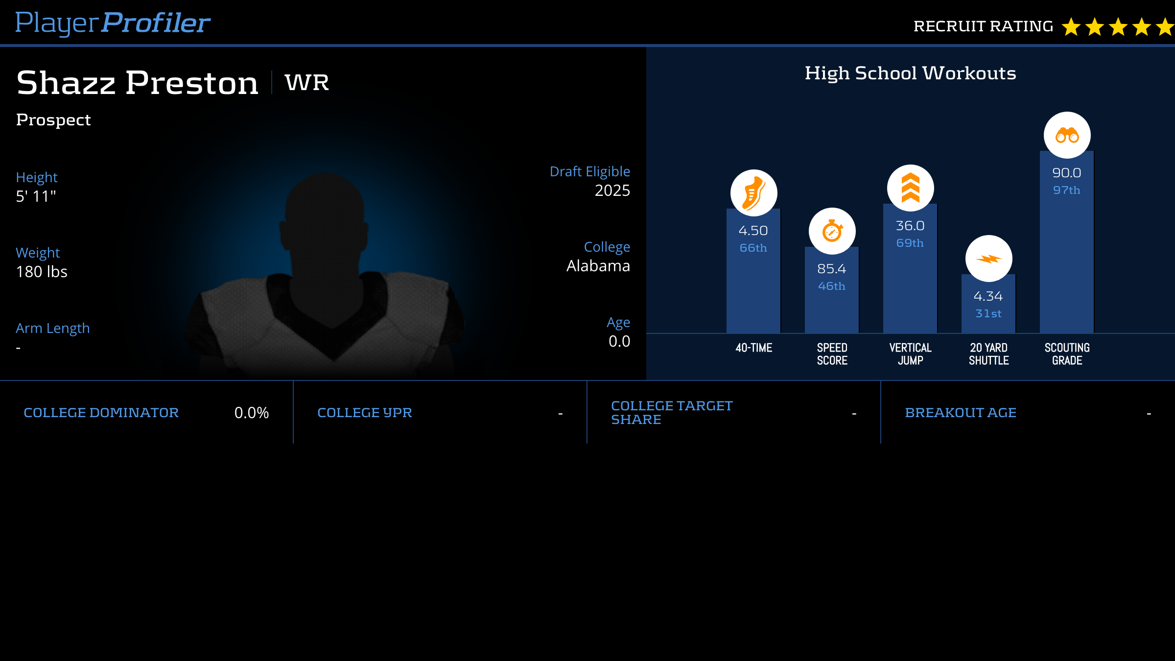 Player Popularity Index (PPI) ranks PlayerProfiler page views over the last 30 days. For example, the No. 1 PPI player page is the most frequently visited page in recent weeks.