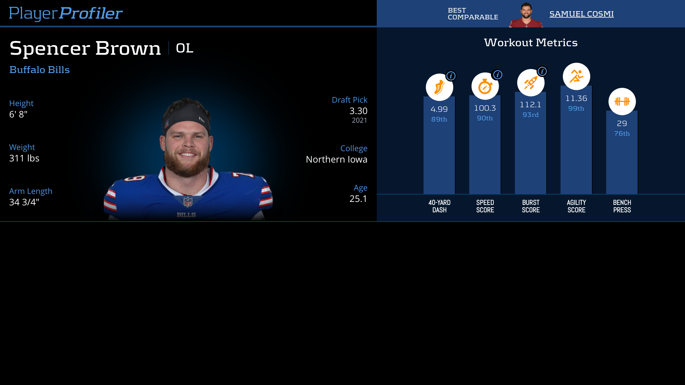 Download all Spencer Brown advanced stats and metrics with Data Analysis.