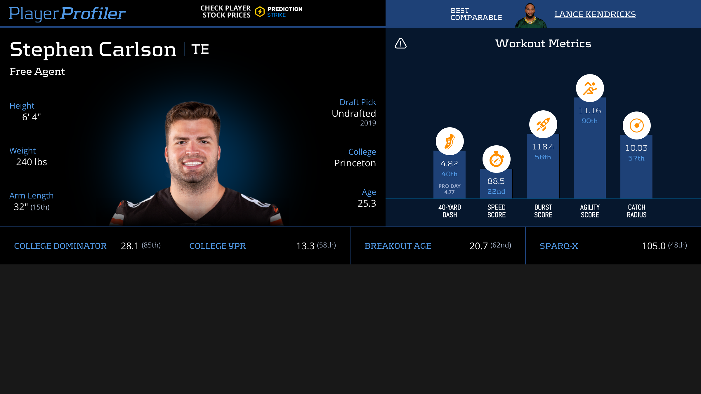 | Year Year | Games Games | Receptions Recs | Receiving Yards Rec Yds | Target Share Tgt Share | Catch Rate Catch Rate | Receiving Touchdowns Rec TDs | Special Teams Yards Special Teams | Age Age | School School |