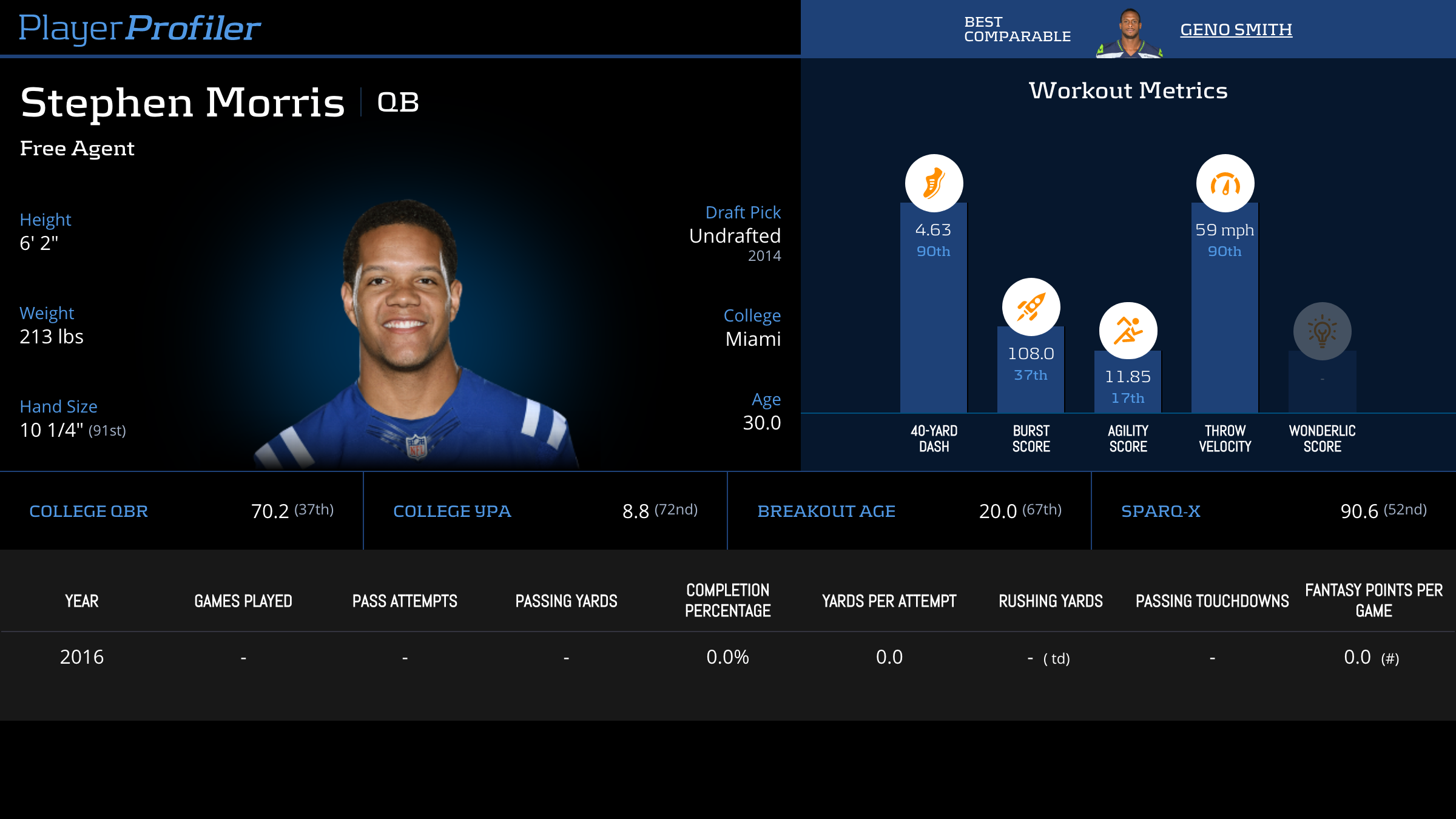 | Year Year | Games Games | Pass Attempts Pass Atts | Passing Yards Pass Yds | Yards Per Attempt YPA | Completion Percentage Comp % | Passing Touchdowns Pass TDs | Rushing Yards Rush Yds | Age Age | School School |