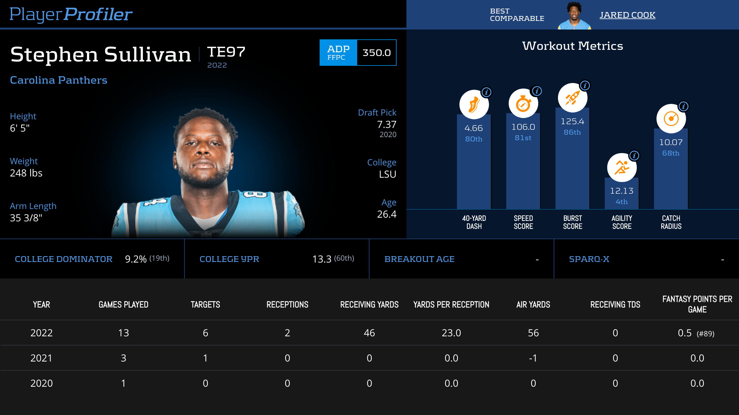 | 13 | TB | 11.4% | 2 (4.3% rate) | 1 | -- | 0 (16 air) | 0.0 (#59) |