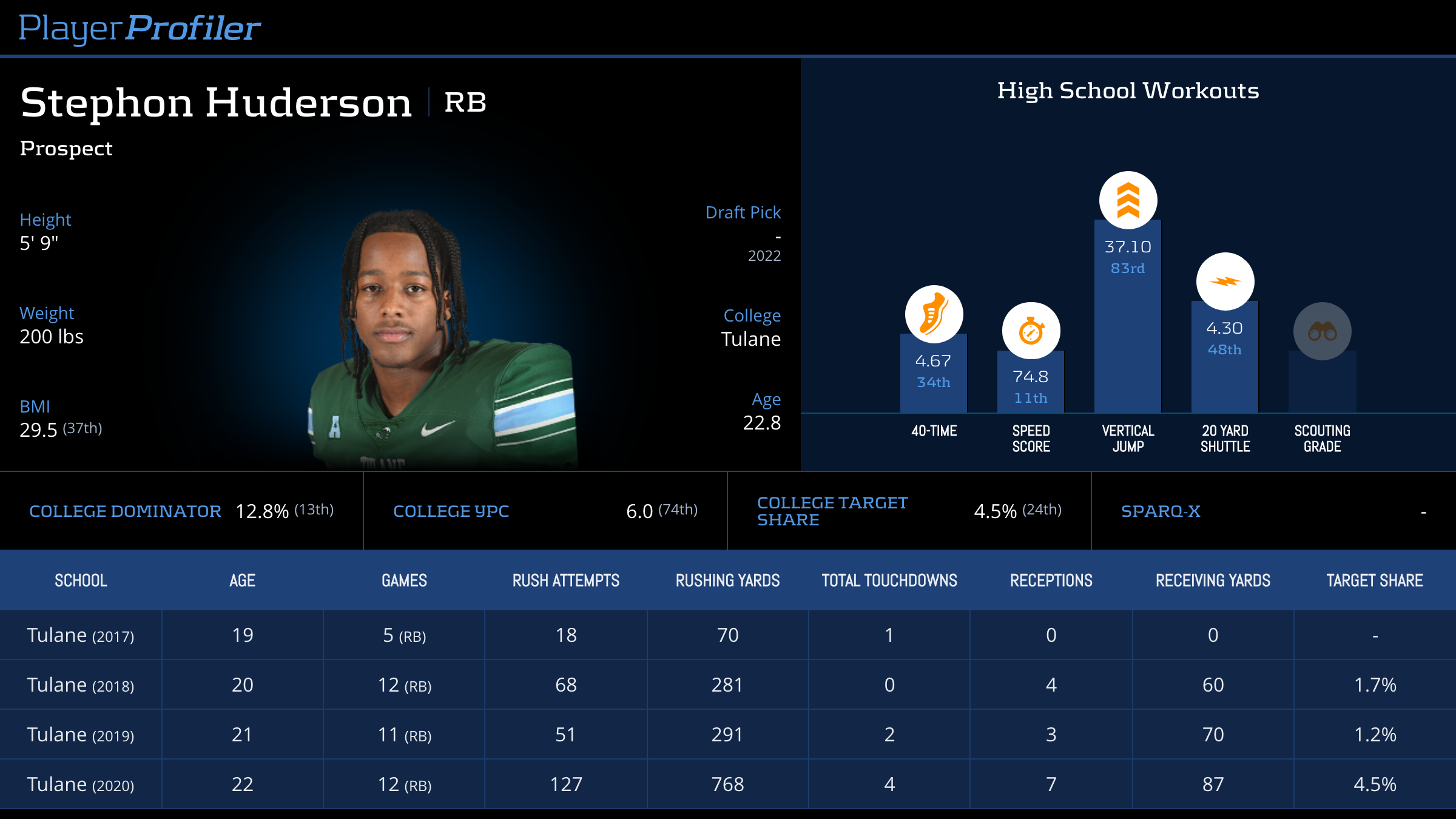 | Year Year | Games Games | Rush Attempts Rush Atts | Rushing Yards Rush Yrds | Total Touchdowns TDs | Receptions Rec | Receiving Yards Rec Yrds | Target Share Tgt Share | Age Age | School School |