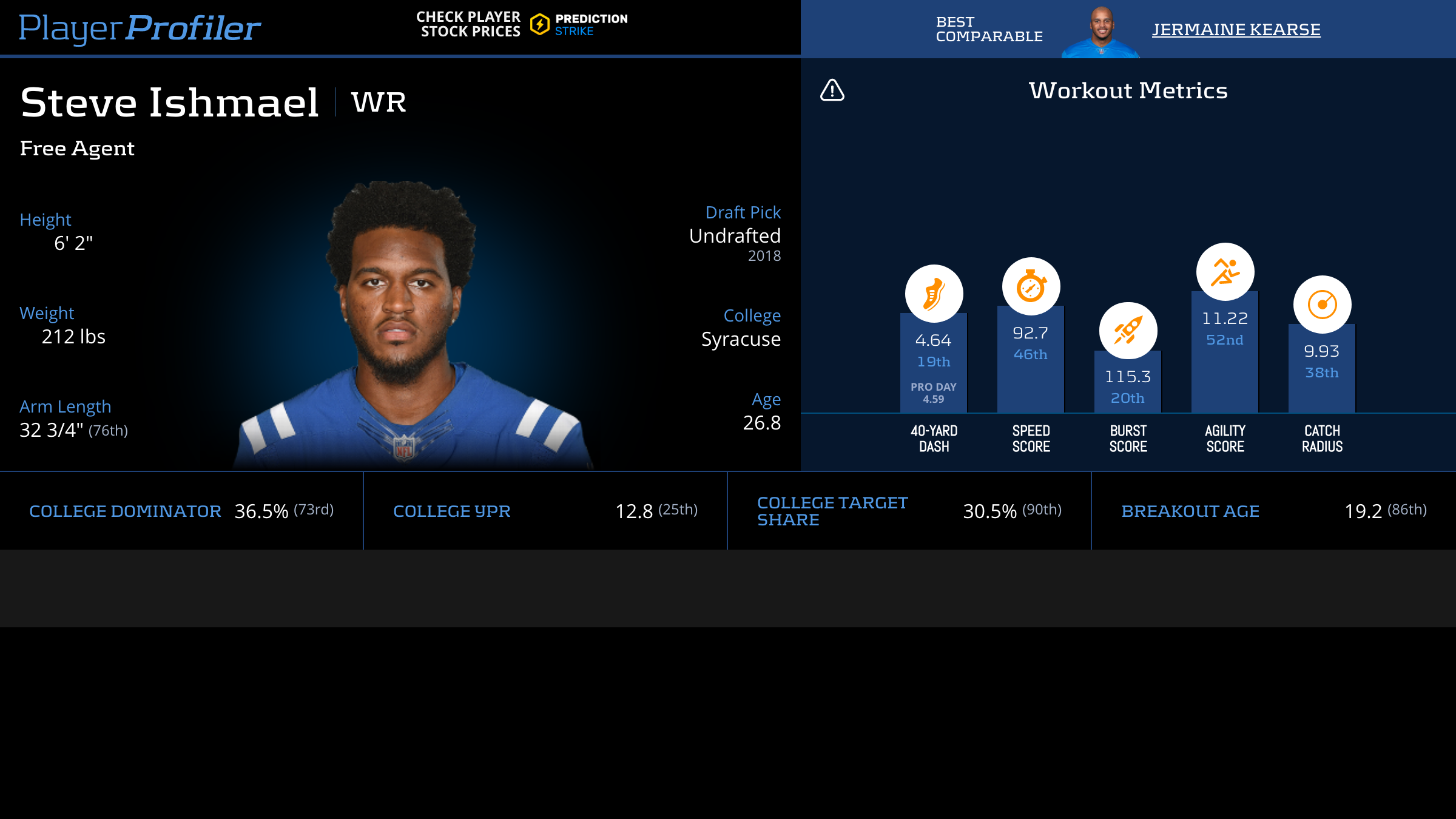 | Year Year | Games Games | Receptions Recs | Receiving Yards Rec Yds | Target Share Tgt Share | Catch Rate Catch Rate | Receiving Touchdowns Rec TDs | Special Teams Yards Special Teams | Age Age | School School |