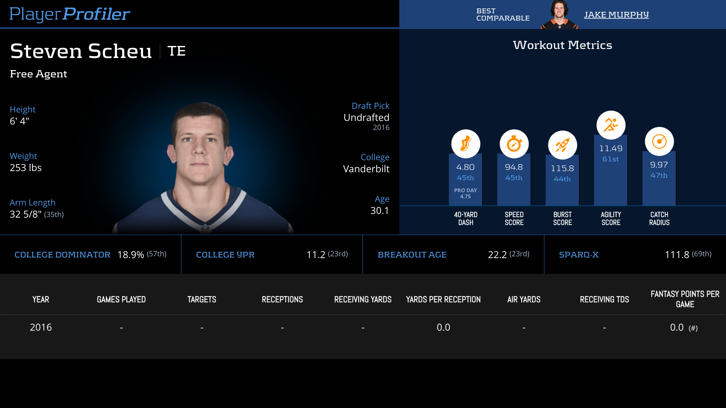 | Year Year | Games Games | Receptions Recs | Receiving Yards Rec Yds | Target Share Tgt Share | Catch Rate Catch Rate | Receiving Touchdowns Rec TDs | Special Teams Yards Special Teams | Age Age | School School |