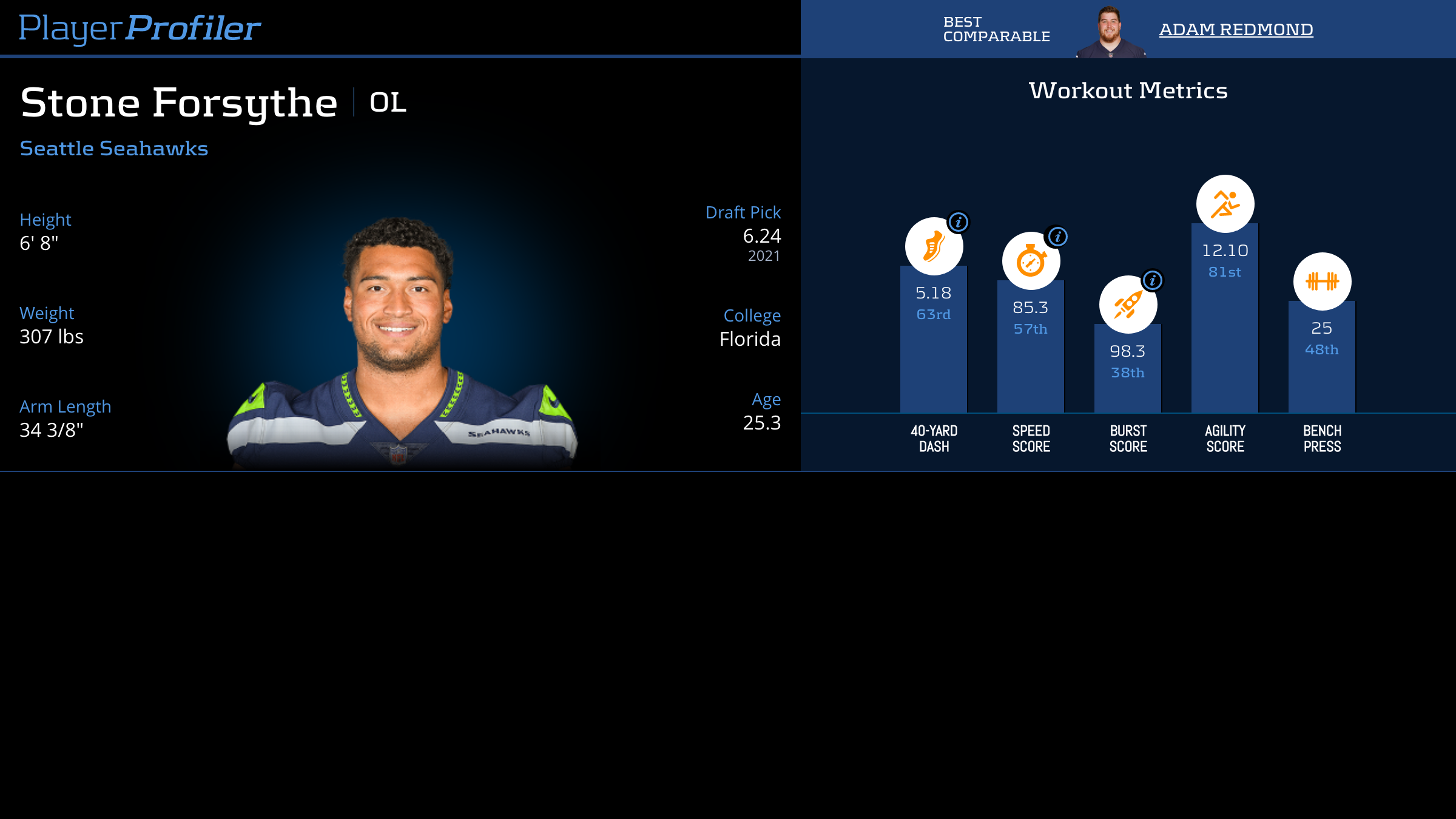 Download all Stone Forsythe advanced stats and metrics with Data Analysis.