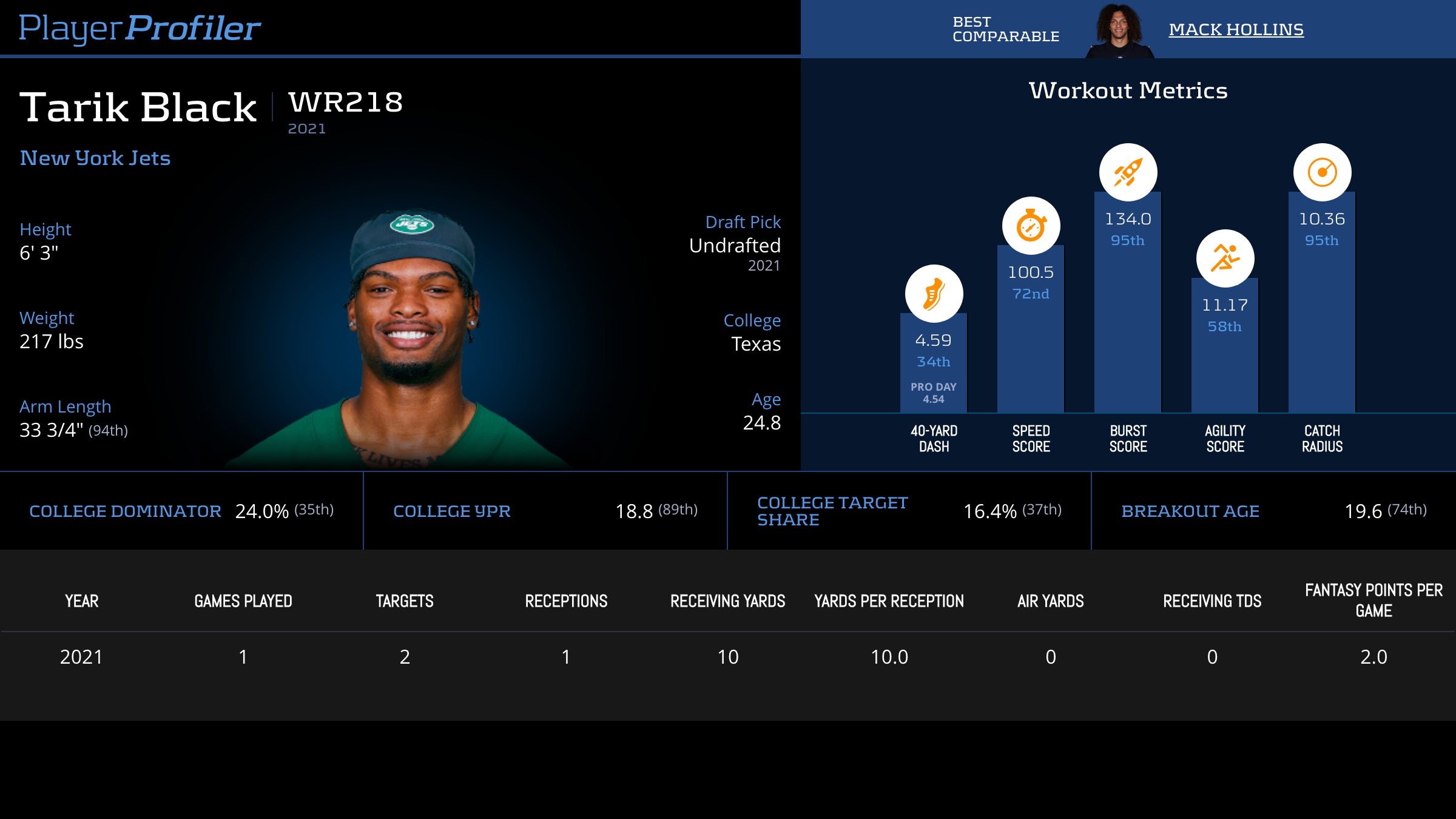 | Year Year | Games Games | Receptions Recs | Receiving Yards Rec Yds | Target Share Tgt Share | Catch Rate Catch Rate | Receiving Touchdowns Rec TDs | Special Teams Yards Special Teams | Age Age | School School |