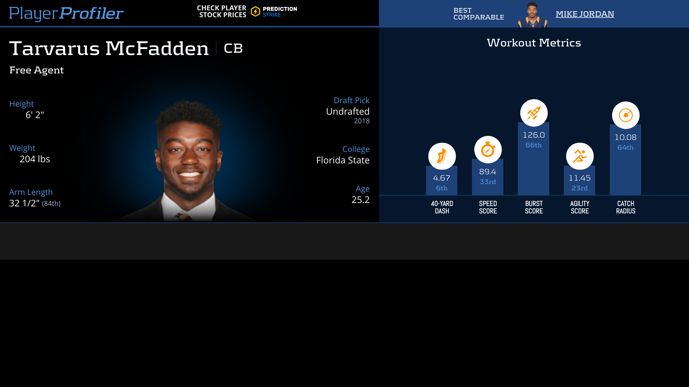 Value Over Stream: Valuation scheme calculates a player's fantasy pts/game over the average waiver wire replacement in standard fantasy league formats during either the current season (or previous year during the offseason) and adjusts for positional bust rates. VOS rank in parenthesis spans all positions, enabling player comparisons across QB's, RB's, WR's, and TE's.