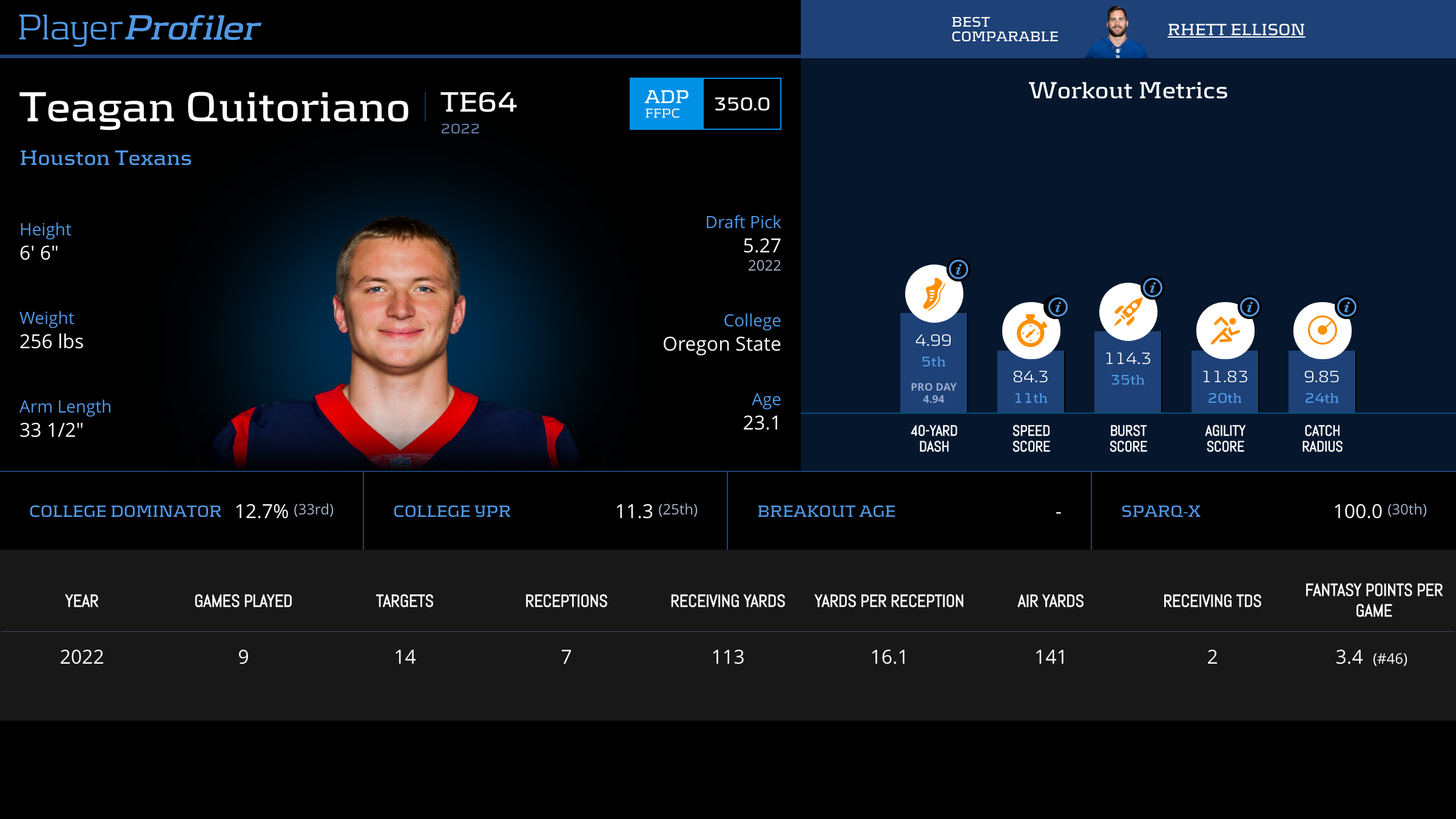 Box score statistics such as targets, yards, touchdowns, and fantasy points per target are updated the next day. Advanced stats and metrics are updated later in the week during the NFL season.