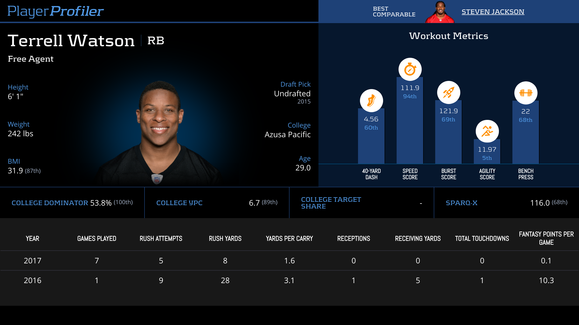 Box score statistics such as targets, yards, touchdowns, and fantasy points per target are updated the next day. Advanced stats and metrics are updated later in the week during the NFL season.