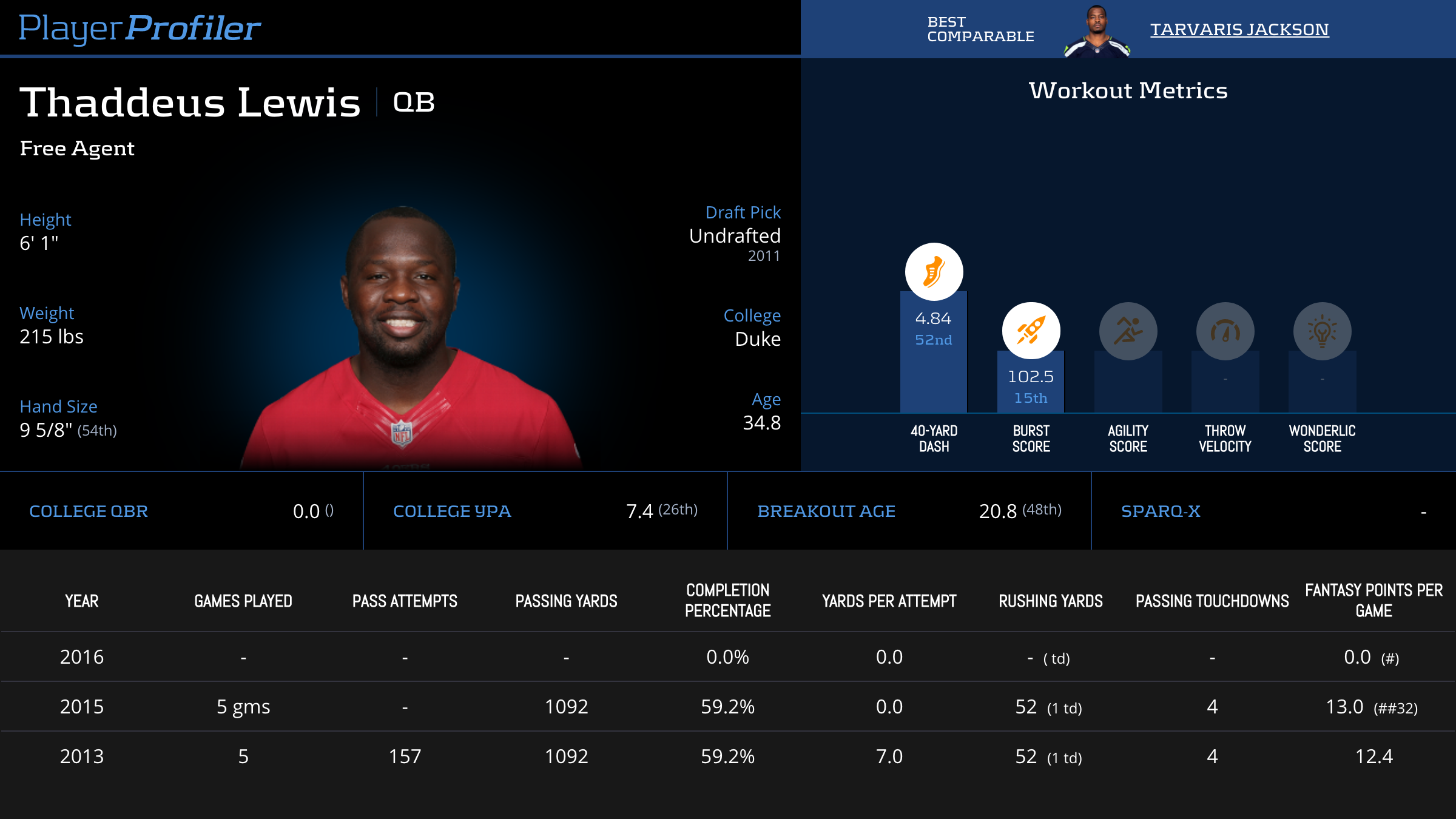 | 16 | MIA | 25 | 60.0% | 193 | 7.7 | 0 (1 int) | 13 | -- | 8.0 (#23) |