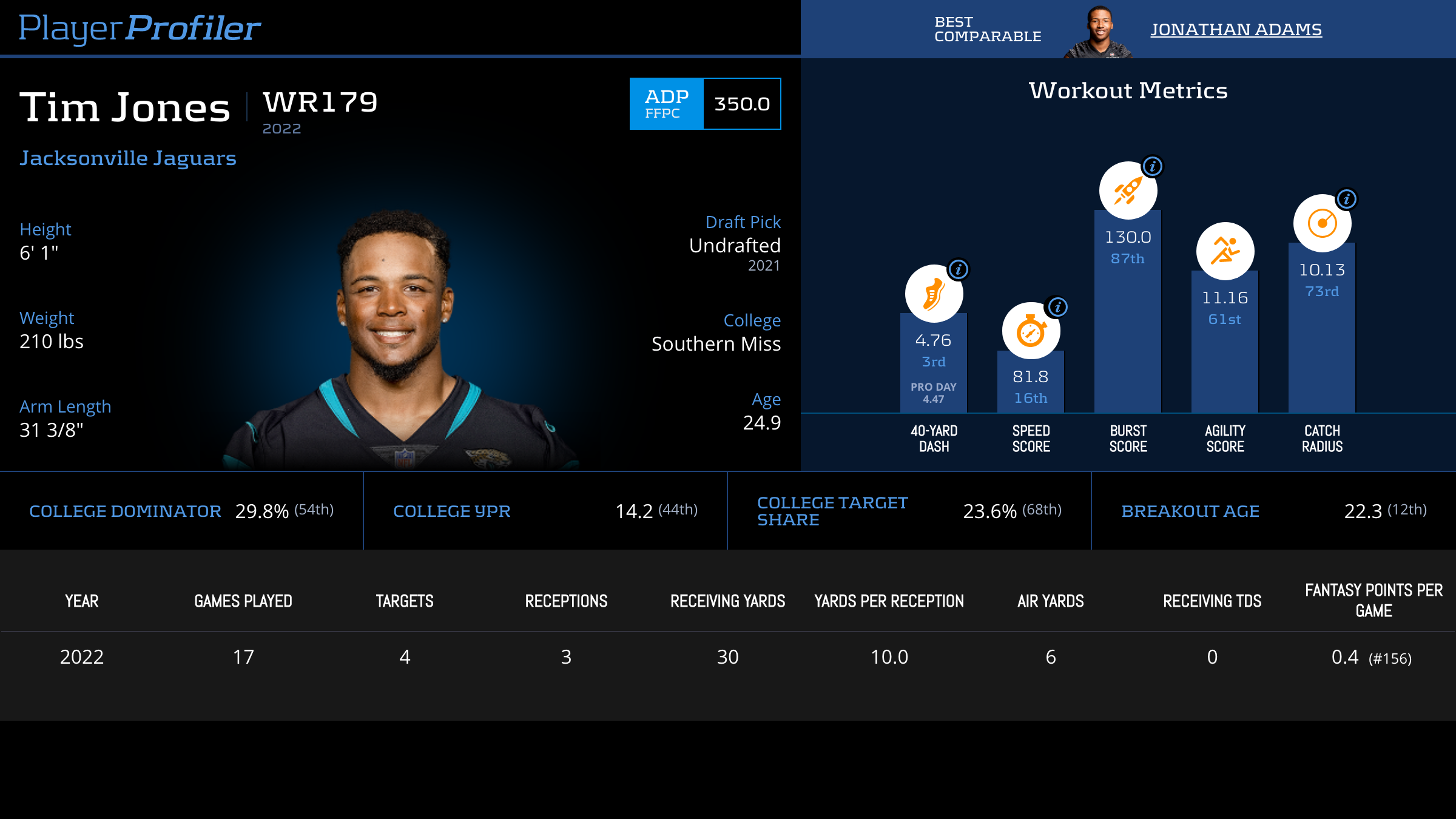 | 10 | HOU | Tremon Smith | 8.1% | 1 (3.6% rate) | -- | -- | -- | 0.0 (#93) |