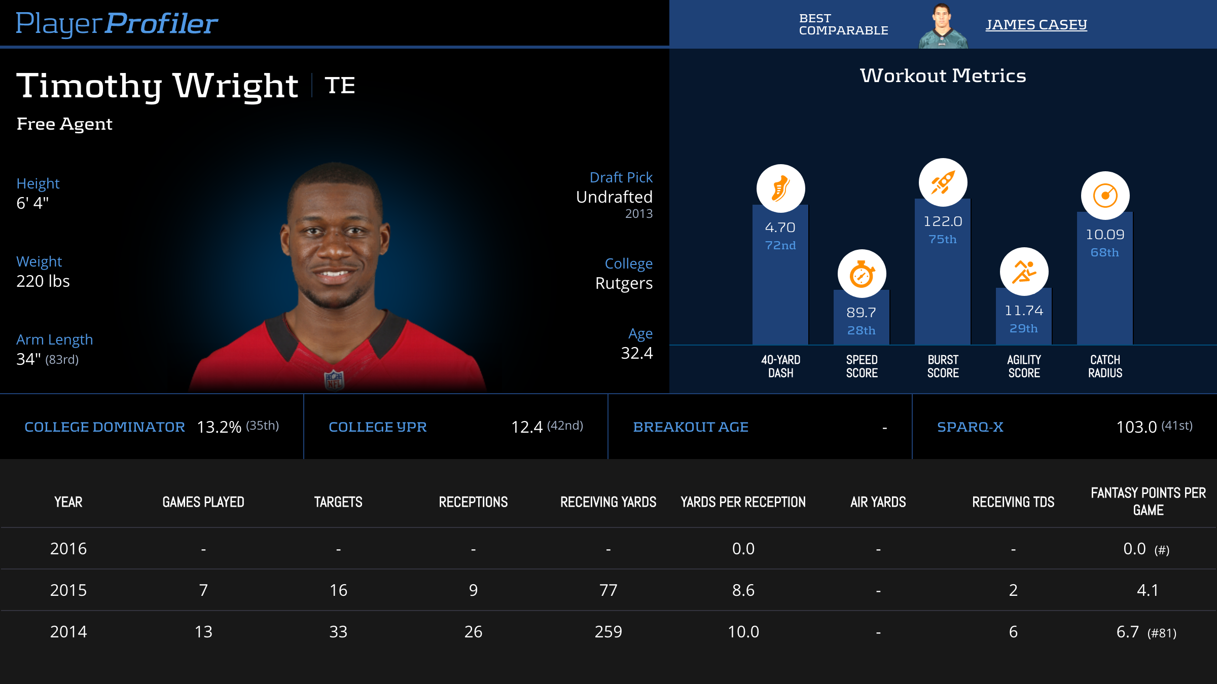 Box score statistics such as targets, yards, touchdowns, and fantasy points per target are updated the next day. Advanced stats and metrics are updated later in the week during the NFL season.