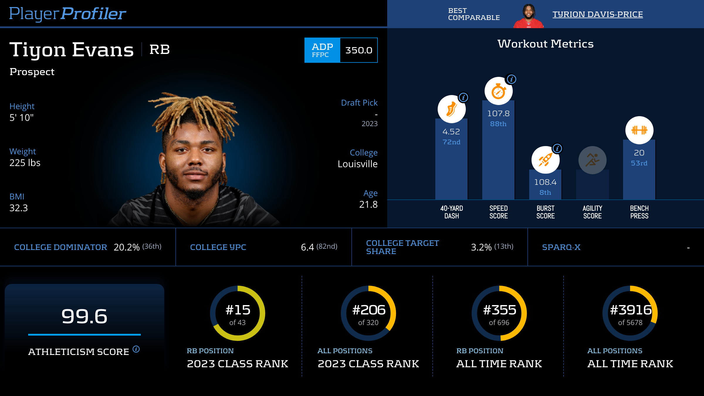 | Year Year | Games Games | Rush Attempts Rush Atts | Rushing Yards Rush Yrds | Total Touchdowns TDs | Receptions Rec | Receiving Yards Rec Yrds | Target Share Tgt Share | Age Age | School School |