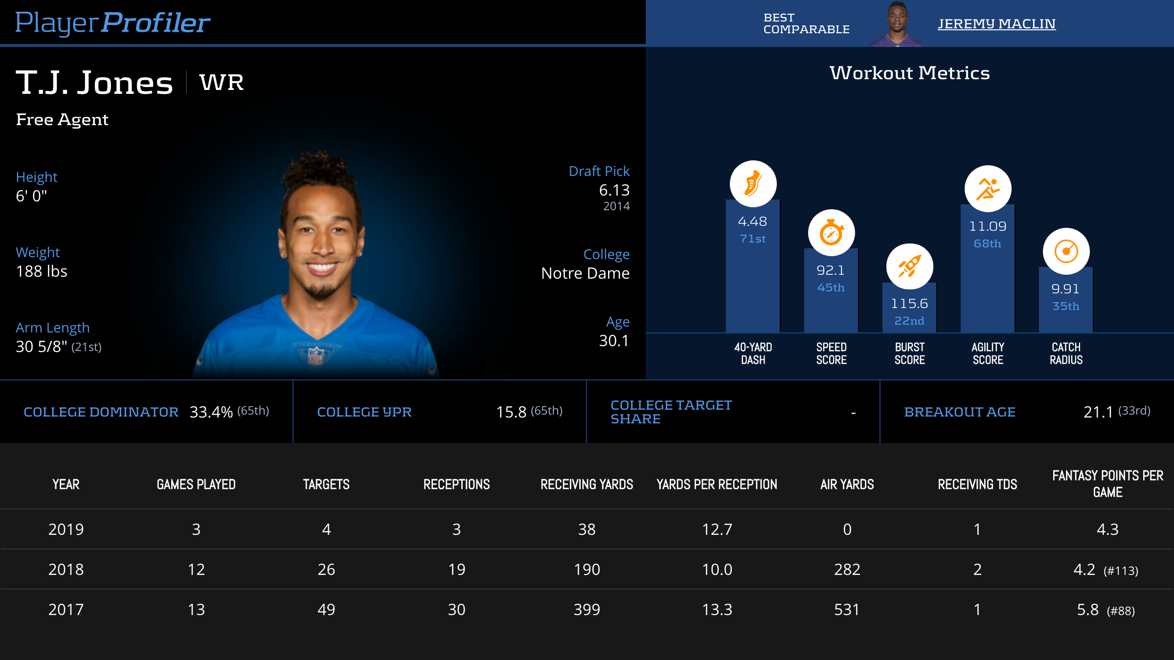 Box score statistics such as targets, yards, touchdowns, and fantasy points per target are updated the next day. Advanced stats and metrics are updated later in the week during the NFL season.